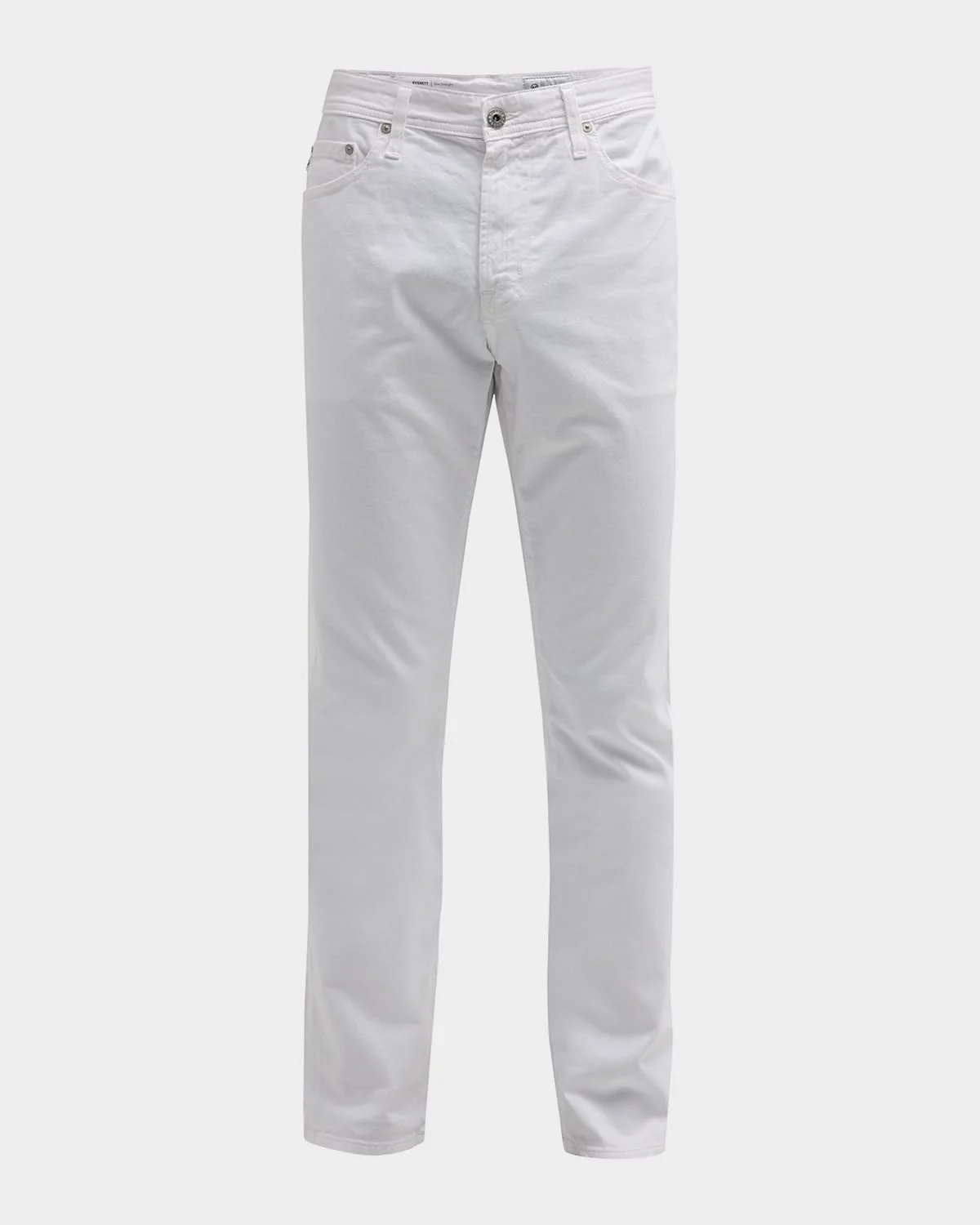 AG "Everett" fit pants in stretch-twill. Five-pocket style; signature stitching at back pockets. Leather logo patch at back waist. Skinny fit; tapered legs. Button/zip fly; belt loops. Cotton/polyurethane. Imported.