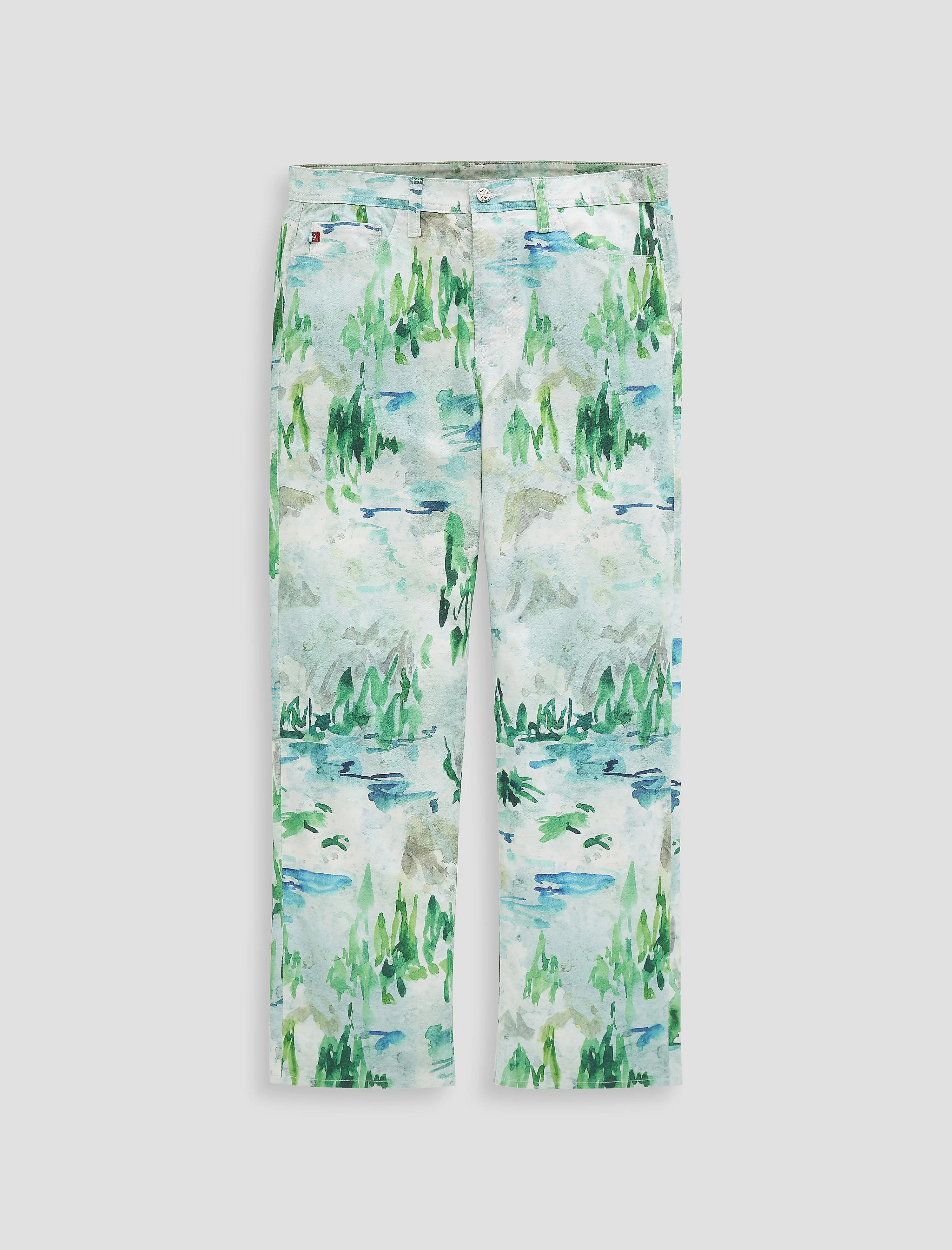 Vintage Straight Inspired by the forests and cascading waterfalls of Yosemite, Felix is our signature vintage straight pant, featuring an abstract watercolor graphic print on the outside and a blue-green wave pattern on the inside. Crafted in Sorrento Stretch Twill, Felix features a traditional five-pocket construction, fitted upper block, button fly closure, and straight leg with a broken-in feel. This statement pant renders the park's iconic landscape into an abstract, wearable expression of natural grandeur. It is designed to sit lower on the hips, so the length may feel longer than a standard 30" inseam. DETAILS & FIT Model is wearing size 32. - Front Rise: 12" - Knee Opening: 20" - Bottom Opening: 17" - Inseam: 30" FABRIC & CARE Sorrento Stretch Twill, 7.9 Oz. 68% Cotton, 27% Lyocell, 5% Elastane