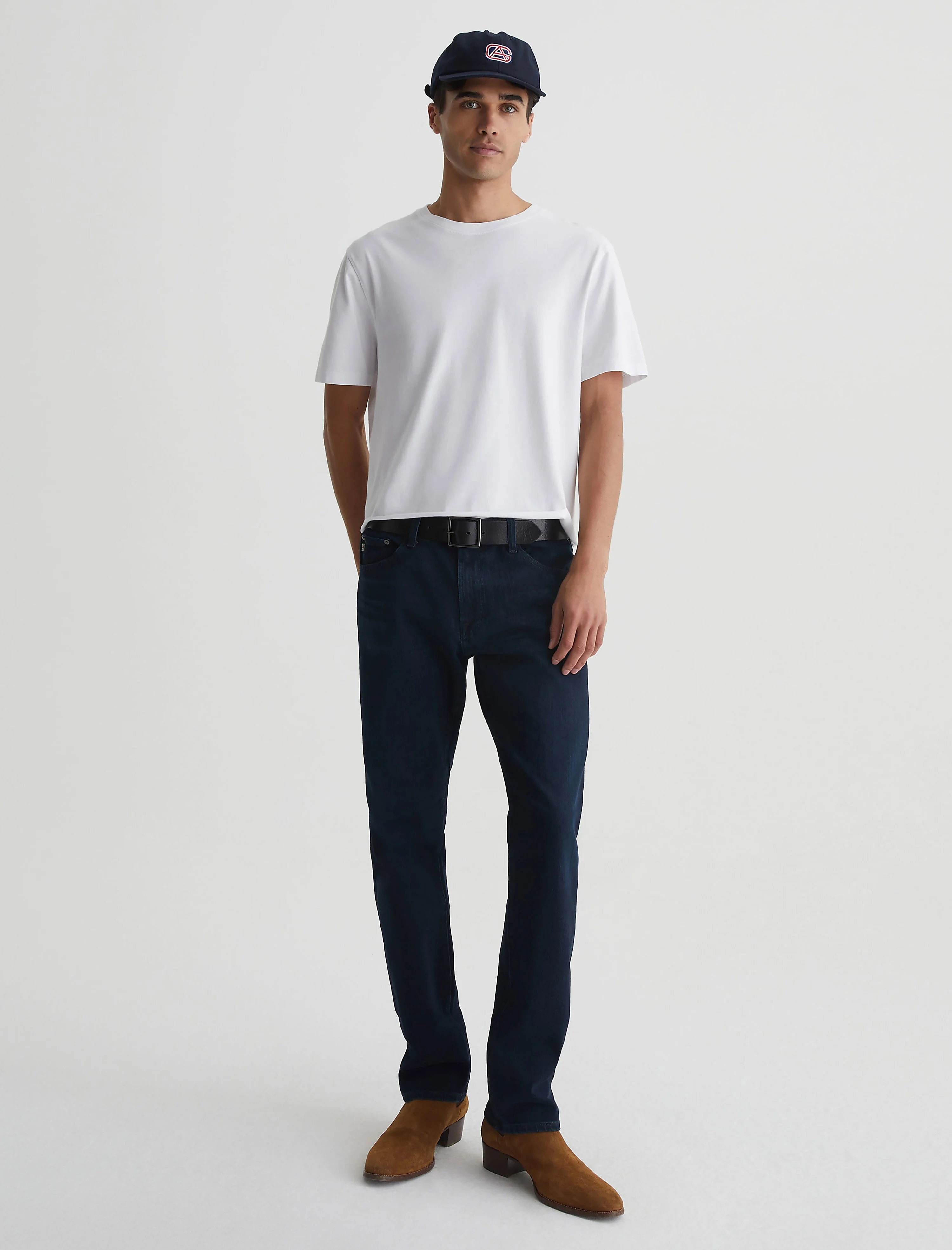 Tailored Leg The Graduate is a tailored leg jean for men featuring a dark wash. The Graduate is cut in a slim mid-rise waist with a relaxed fit from the hip to the knee before tapering at the leg opening. This men’s slim straight jean is designed in 11.5 oz. 360° Denim. DETAILS & FIT Model is wearing size 32. - Front Rise: 10" - Knee Opening: 17" - Bottom Opening: 15 1/2" - Inseam: 34" FABRIC & CARE 360° Denim, 11.5 Oz. 96% Cotton, 4% Polyurethane