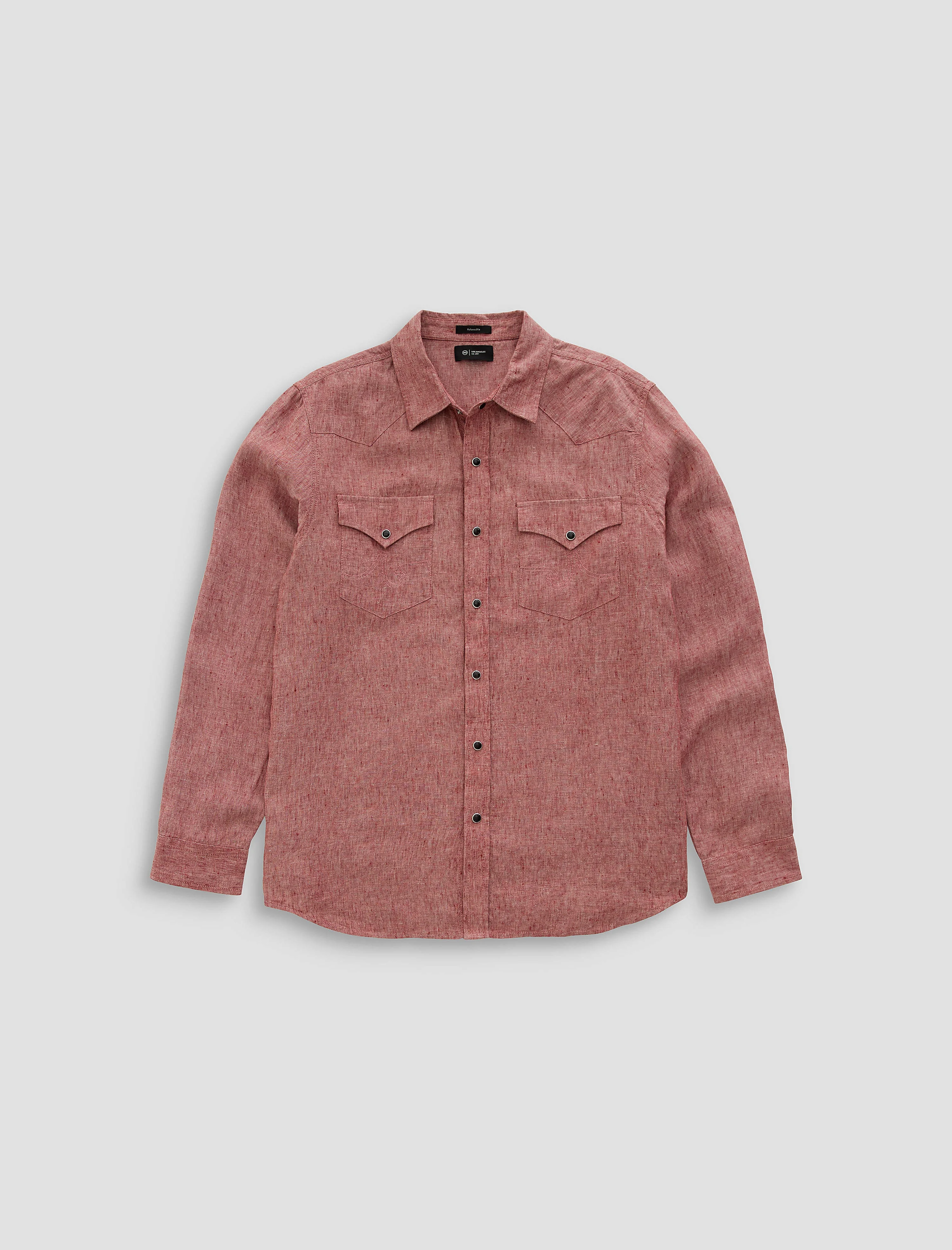 Snap Front Top Huston is a Western shirt crafted from premium 100% linen for a comfortable, lightweight construction. With a relaxed fit, curved hem, and Western yoke, this shirt has a vintage Americana appeal for everyday wear. Detailed with black pearl-like snap buttons and tonal stitching. Designed in a rusty brick red color, Adobe Clay. DETAILS & FIT Model is wearing size M. - Body Length: 29 1/2" - Sleeve Length: 26" - Chest Width: 43" FABRIC & CARE Lightweight Easy Linen, 100% Linen
