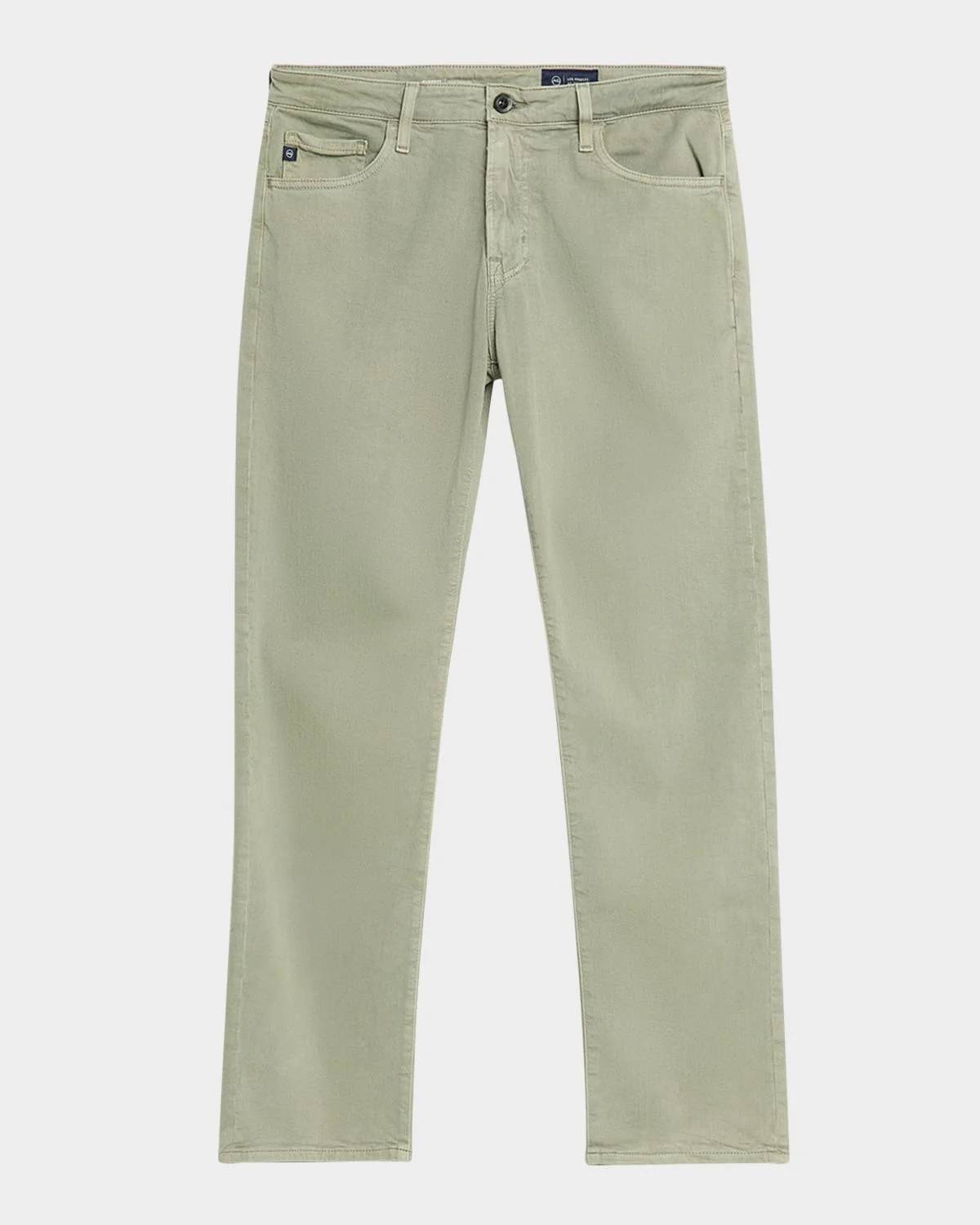 AG Jeans "Everett" jeans in dark-wash stretch denim Regular rise Button/zip closure Five-pocket style Full length Slim fit through straight legs Cotton/polyurethane Made in Mexico Model is 6'1"/185cm.