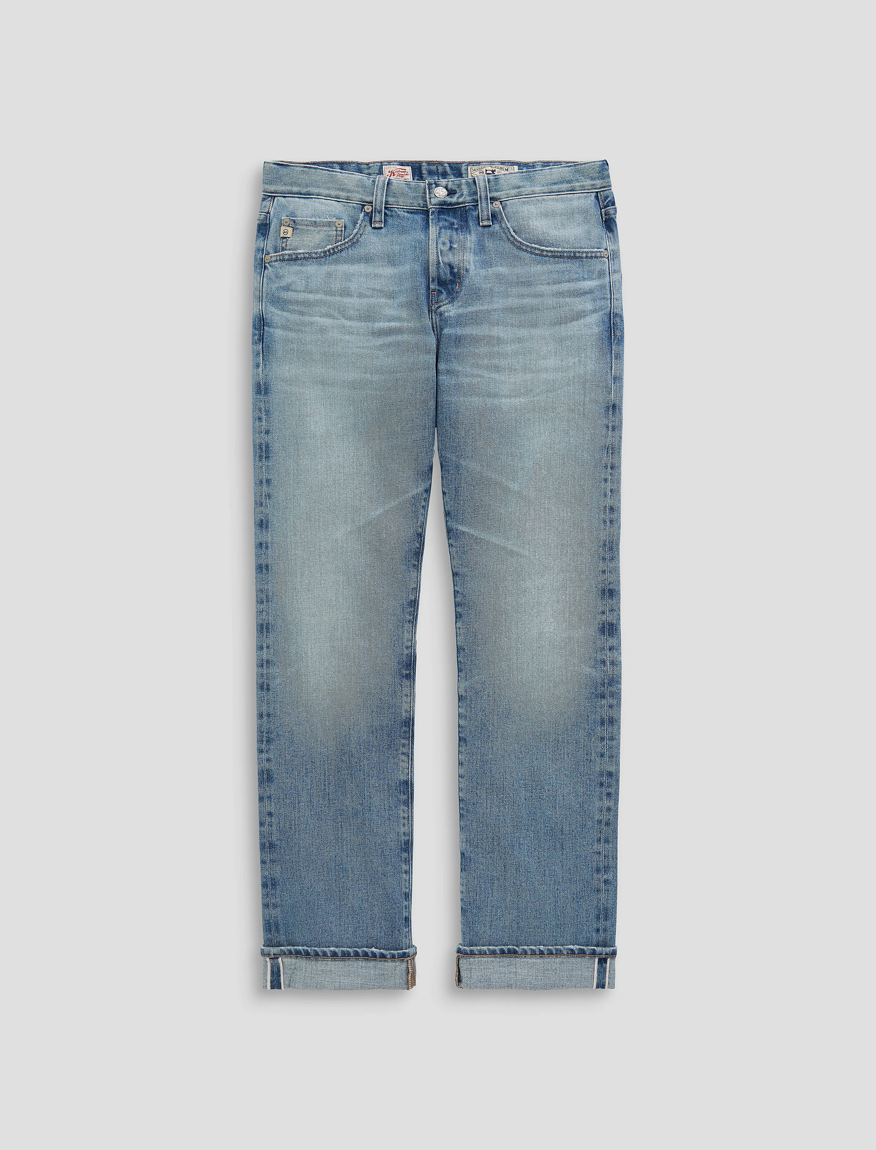 Classic Straight Protege is crafted in Comfort Stretch Midnight Selvage Denim from the renowned Kaihara Mill in Japan. A classic straight pant with a button fly, easy fit through the thighs, and clean finish at the leg opening. Designed in our light blue wash, 20 Years Nomad, and finished to emulate 20 years of AG-ed™ wear through fading, worn-down trim, and a lived-in patina with pigment accents on the seams and creases as well as whiskering on the front and behind the knees. DETAILS & FIT Model is wearing size 32. - Front Rise: 10" - Knee Opening: 17 1/2" - Bottom Opening: 16 1/2" - Inseam: 32" FABRIC & CARE Midnight Selvage Denim, 13.25 Oz. 98% Organic Cotton, 2% Elastane
