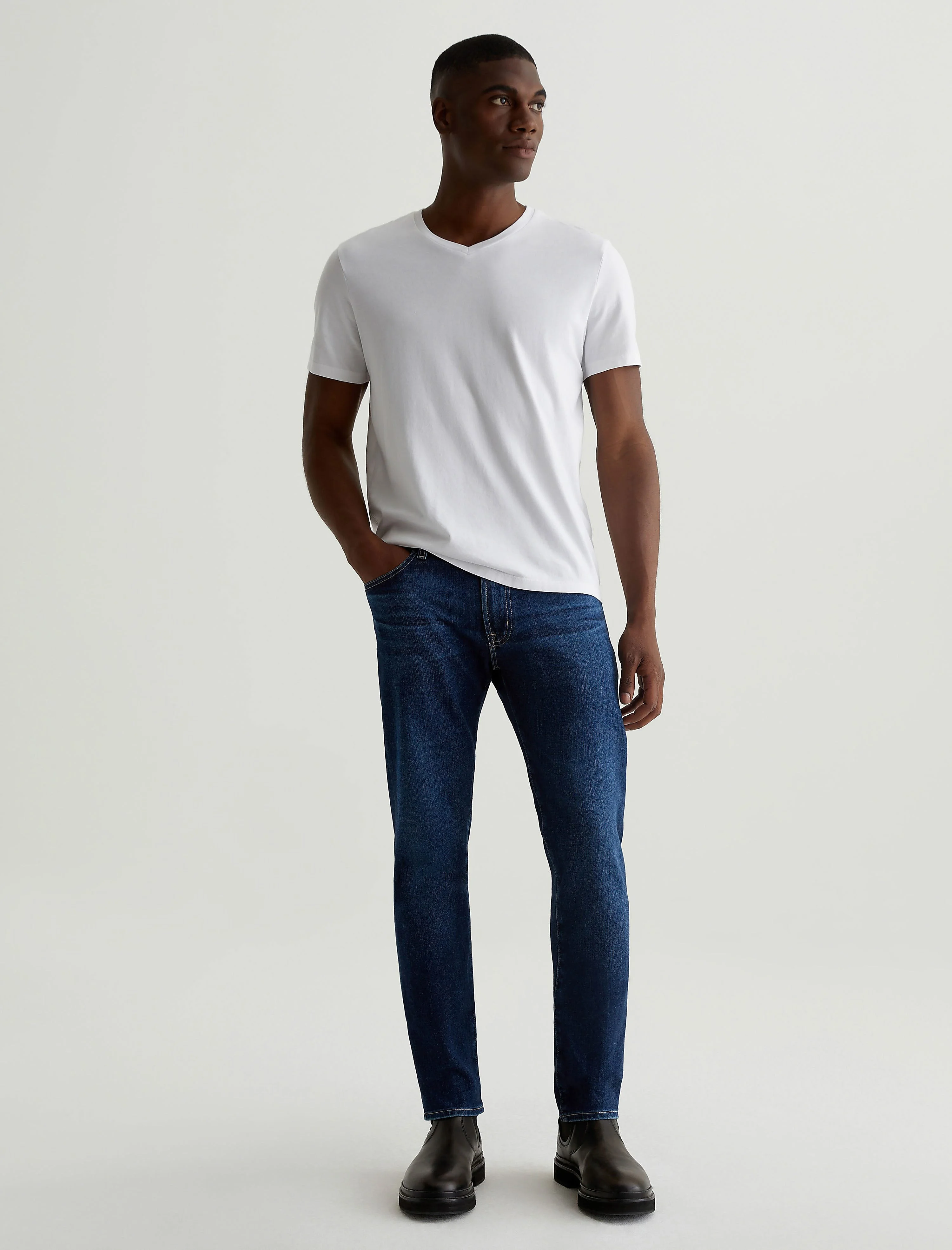 Modern Slim The Tellis modern slim jean for men features a fitted upper block and tapered leg opening—complete with an authentic medium wash. This men’s pant is designed in 11 oz. Flex 360° Denim for a luxurious feel, premium look, and all-day comfort. DETAILS & FIT Model is wearing size 32. - Front Rise: 10" - Knee Opening: 16 1/2" - Bottom Opening: 14" - Inseam: 34" FABRIC & CARE Flex 360° Denim, 11 Oz. 96% Cotton, 4% Polyurethane