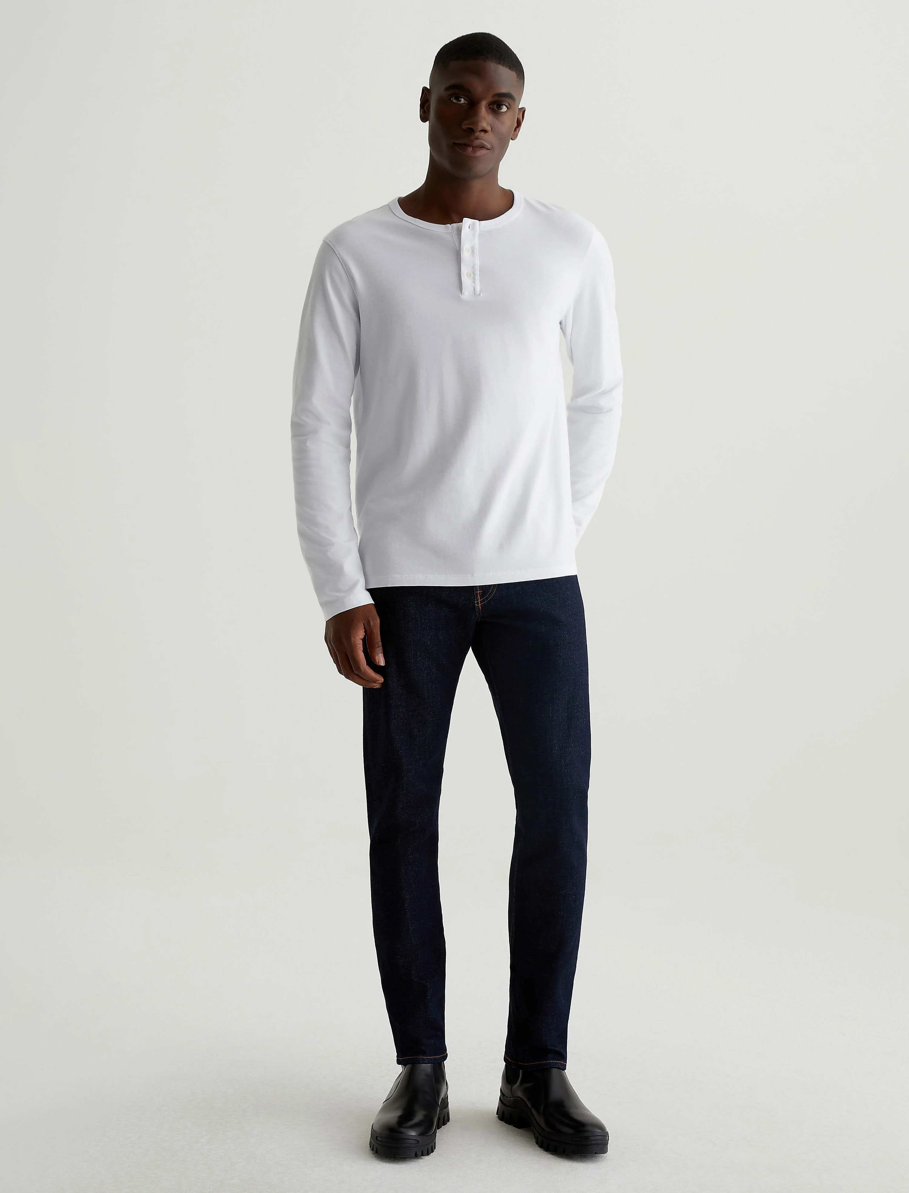 Modern Slim The Tellis modern slim jean for men features a fitted upper block and tapered leg opening—complete with a dark wash. This men’s pant is designed in 11.5 oz. 360° Denim. DETAILS & FIT Model is wearing size 32. - Front Rise: 10" - Knee Opening: 16 1/2" - Bottom Opening: 14" - Inseam: 34" FABRIC & CARE 360° Denim, 11.5 Oz. 96% Cotton, 4% Polyurethane
