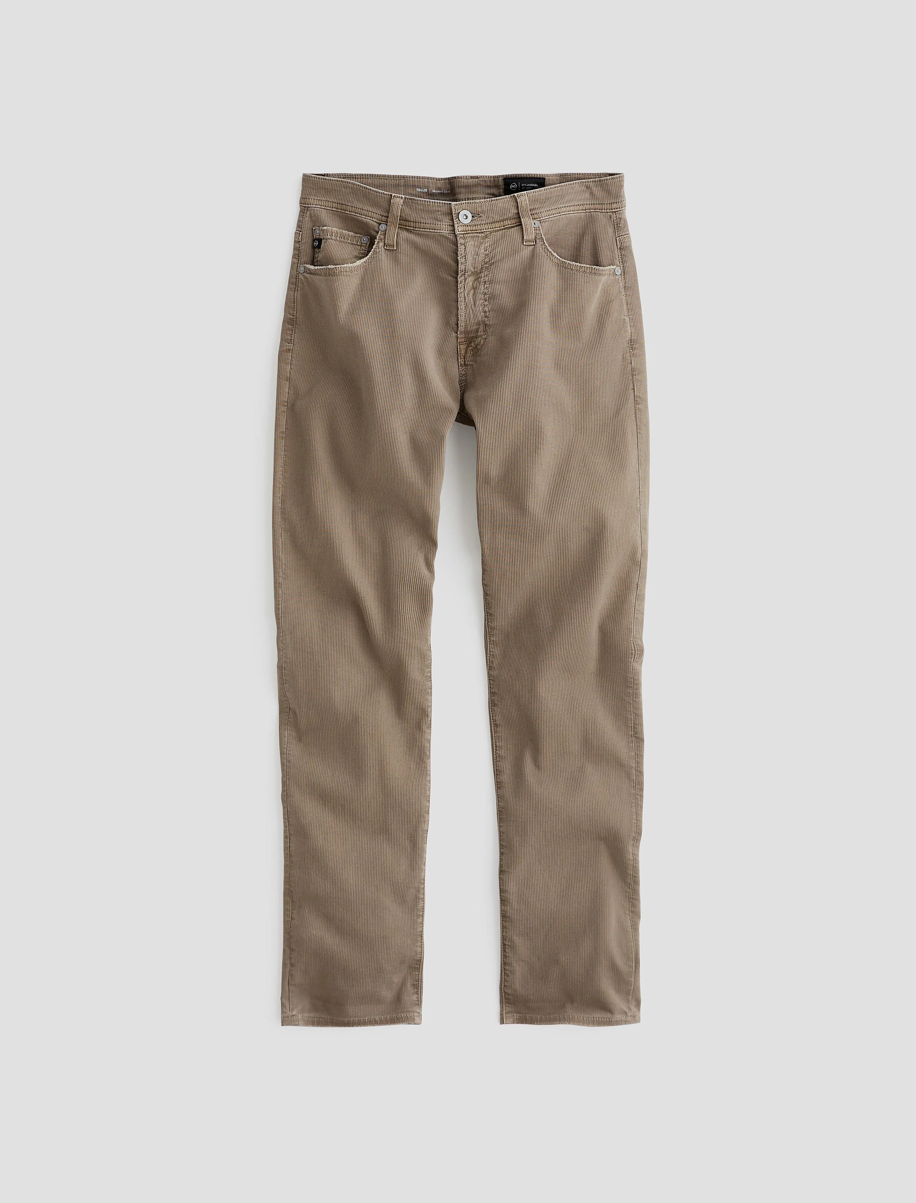Modern Slim Tellis Modern Slim Pant for men features a light brown hue, fitted upper block, and tapered leg opening. These men’s pant is designed in an Italian Bedford Cord, this fabric features subtle wales on the surface and a pique weave on the reverse, offering a unique balance of softness and structure to the pant. DETAILS & FIT Model is wearing size 32. - Front Rise: 10" - Knee Opening: 16 1/2" - Bottom Opening: 14" - Inseam: 34" FABRIC & CARE Bedford Cord, 99% Cotton, 1% Elastane