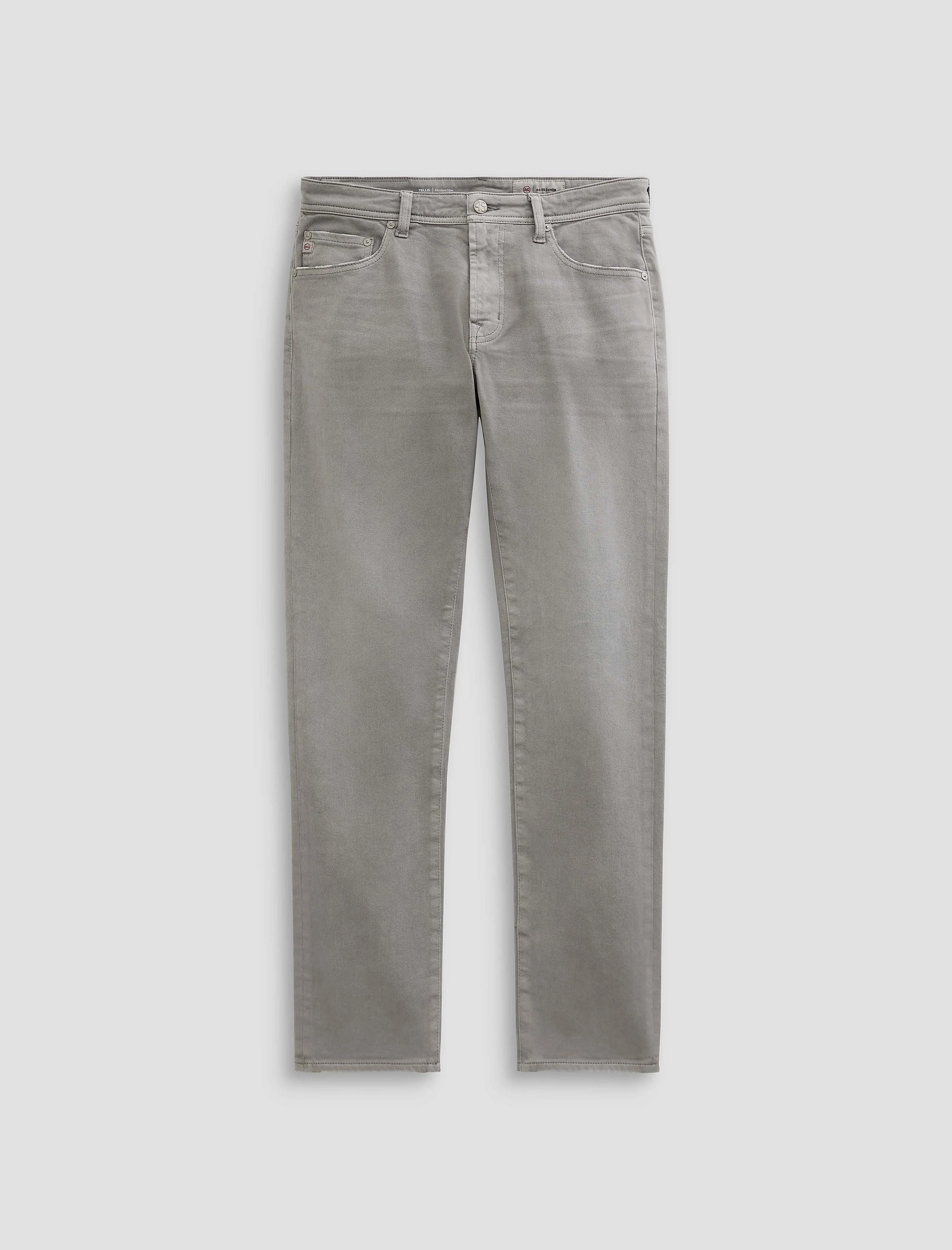 Modern Slim Tellis is crafted from AG Cloud Soft Denim™, a special left-hand twill construction that allows the yarns to relax and untwist for a luxe, supple feel. Our modern slim jean with a fitted upper block and tapered leg opening for a roomy fit. Designed in 7 Years Sulfur Classic Grey, our sulfur-dyed stone grey wash, finished to emulate 7 years of AG-ed™ wear through light fading and worn-down trim. DETAILS & FIT Model is wearing size 32. - Front Rise: 10" - Knee Opening: 16 1/2" - Bottom Opening: 14" - Inseam: 32" FABRIC & CARE AG Cloud Soft Denim™, Hyper Soft Bull Denim, 8.7 Oz. 93% Cotton, 6% Polyester, 1% Elastane