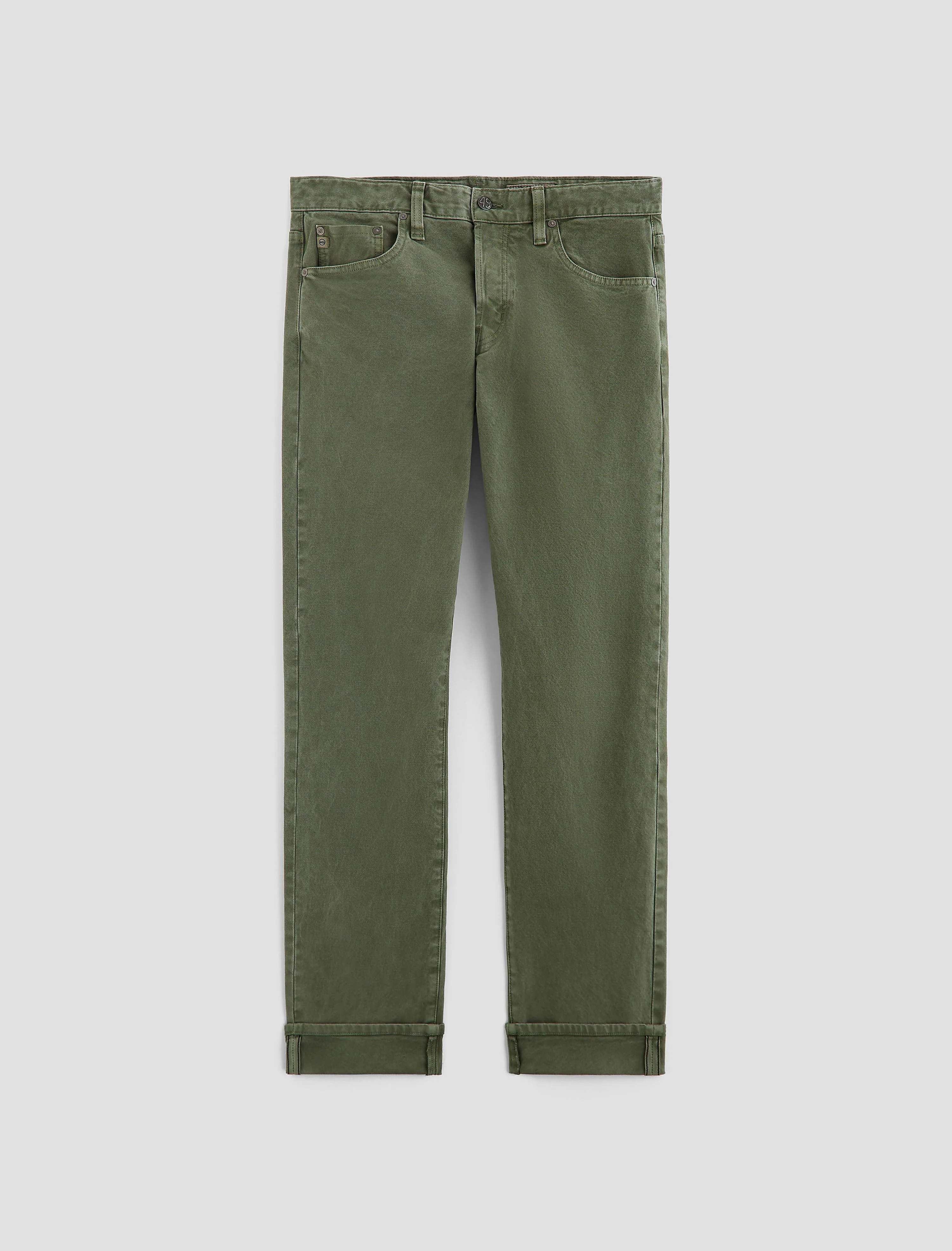 Modern Slim Tellis features a modern slim fit in 3x1 Stretch Selvage Denim from Japan's Kurabo Industries. Sulfur-dyed for a field green shade, these mid-rise jeans have a button fly, fitted upper block, and slender legs with a tapered leg opening. The pair is detailed with black ticking stripes along the self-finished edges at the inner seams. DETAILS & FIT Model is wearing size 32. - Front Rise: 10" - Knee Opening: 16 1/2" - Bottom Opening: 14" - Inseam: 34" FABRIC & CARE Stretch Selvage Denim 3 X 1 Black Line Selvage Denim, 11.5 Oz. 98% Cotton, 2% Elastane