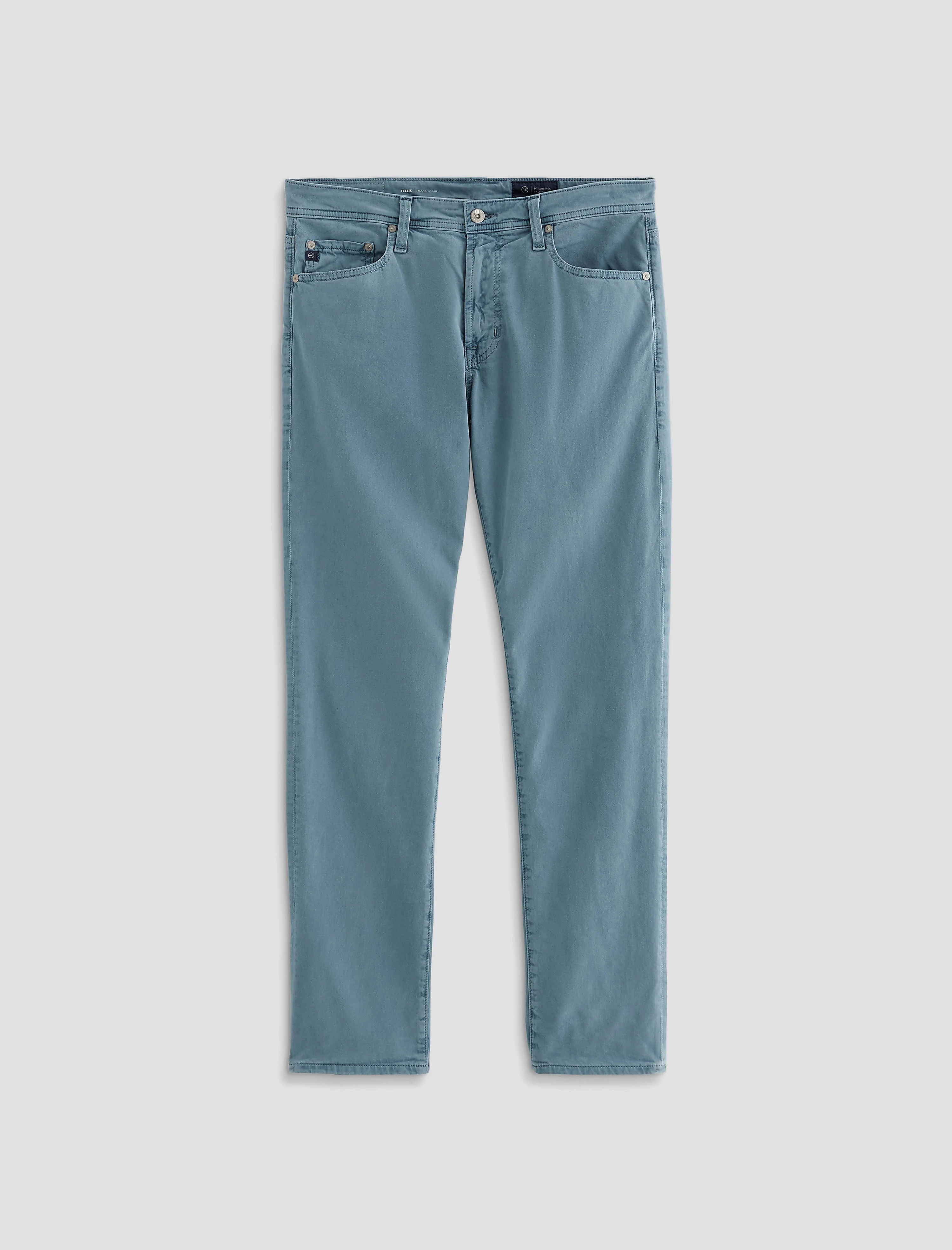 Sueded Sateen Modern Slim The Tellis is a mid-rise slim pant with a tapered leg and classic five-pocket styling. It's crafted from 8.4 oz. Sueded Stretch Sateen for a soft, comfortable feel with a clean finish. This pair comes in Sulfur Shore Break, a light khaki shade that adds a versatile neutral to your everyday lineup. DETAILS & FIT Model is wearing size 32. - Front Rise: 10" - Knee Opening: 16 1/2" - Bottom Opening: 14" - Inseam: 34" FABRIC & CARE Sueded Stretch Sateen, 8.4 Oz. 97% Cotton, 3% Elastane