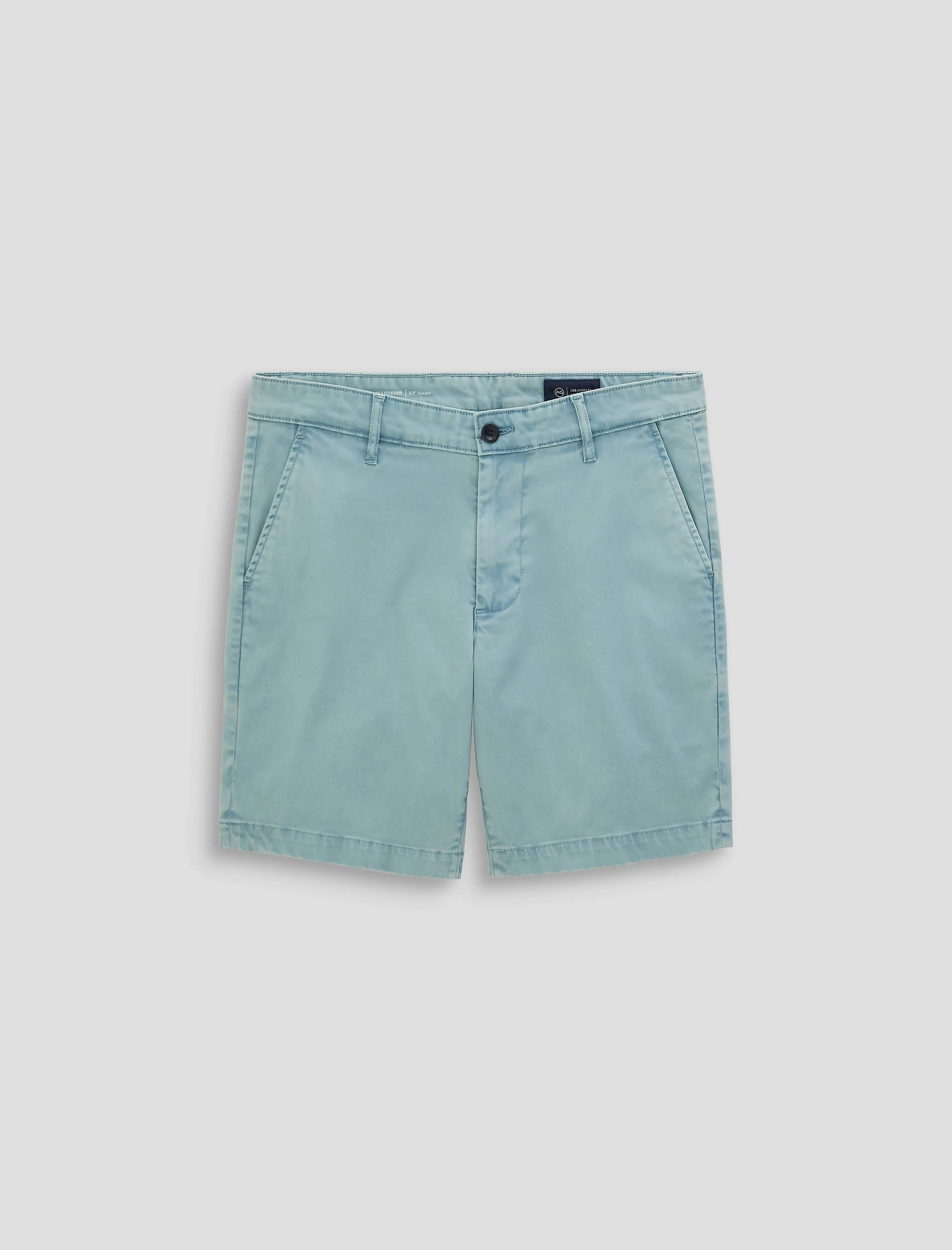 Slim Trouser Silhouette Crafted in Brighton Sueded Sateen sourced from Italy, we introduce the Wanderer, a slim trouser short that offers a contemporary, clean and tailored look. This elevated short is completed with trouser detailing and welt back pockets. Meticulously sulfur-dyed to a subdued baby blue color, Smokey Blue. DETAILS & FIT Model is wearing size 32. - Front Rise: 10 1/4" - Bottom Opening: 20" - Inseam: 8 1/2" FABRIC & CARE Brighton Sueded Sateen, 7.4 Oz. 97.5% Cotton, 2.5% Elastane