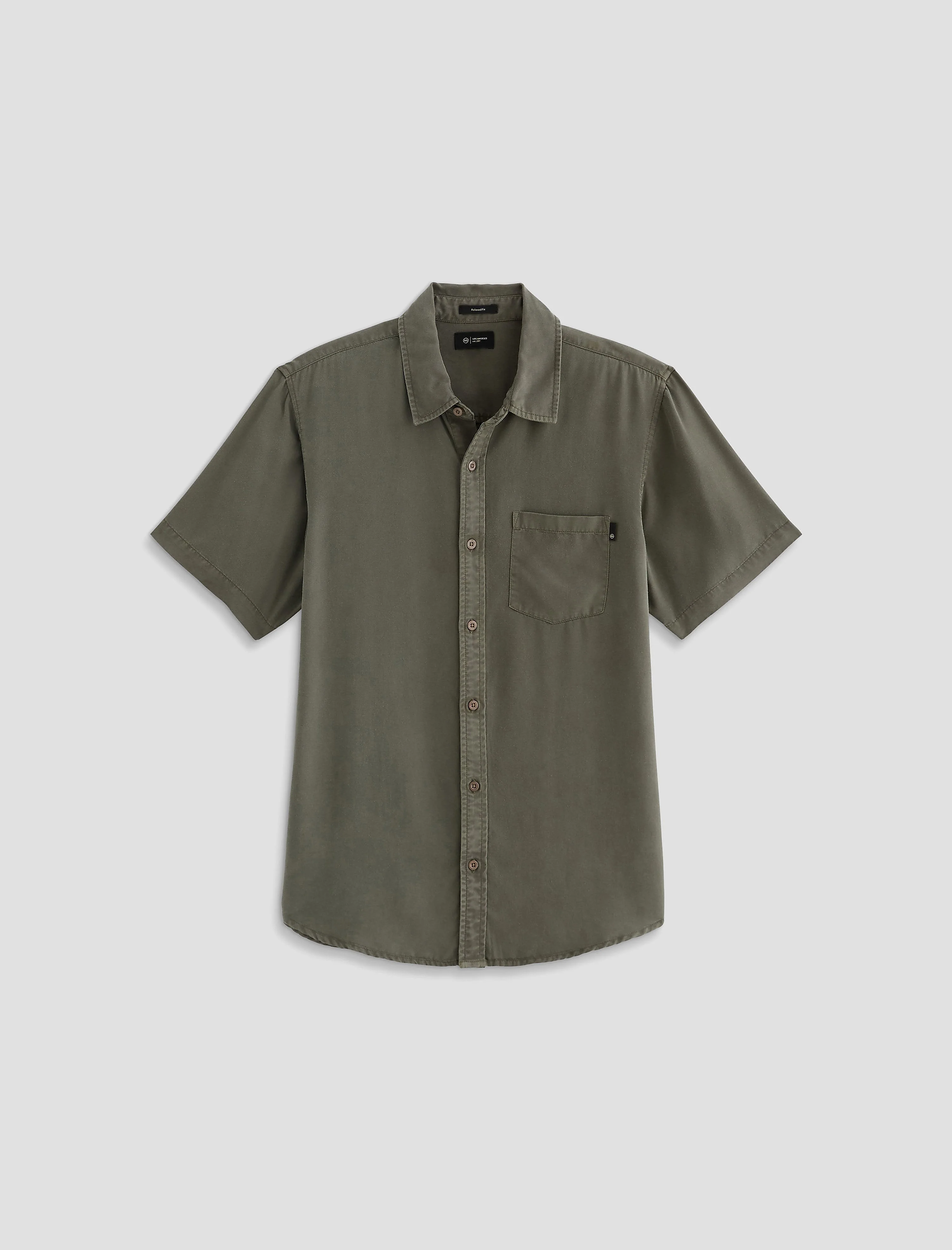 Relaxed Button-Up Shirt The Wesley Short Sleeve Shirt is a relaxed button-up made from 100% Luxe Tencel in a rich green shade. Designed with a single chest pocket, it pairs soft structure with effortless style. DETAILS & FIT Model is wearing size M. - Body Length: 29 1/2" - Sleeve Length: 25 1/2" - Chest Width: 9 1/2" FABRIC & CARE Luxe Tencel™, 100% Tencel™ Lyocell