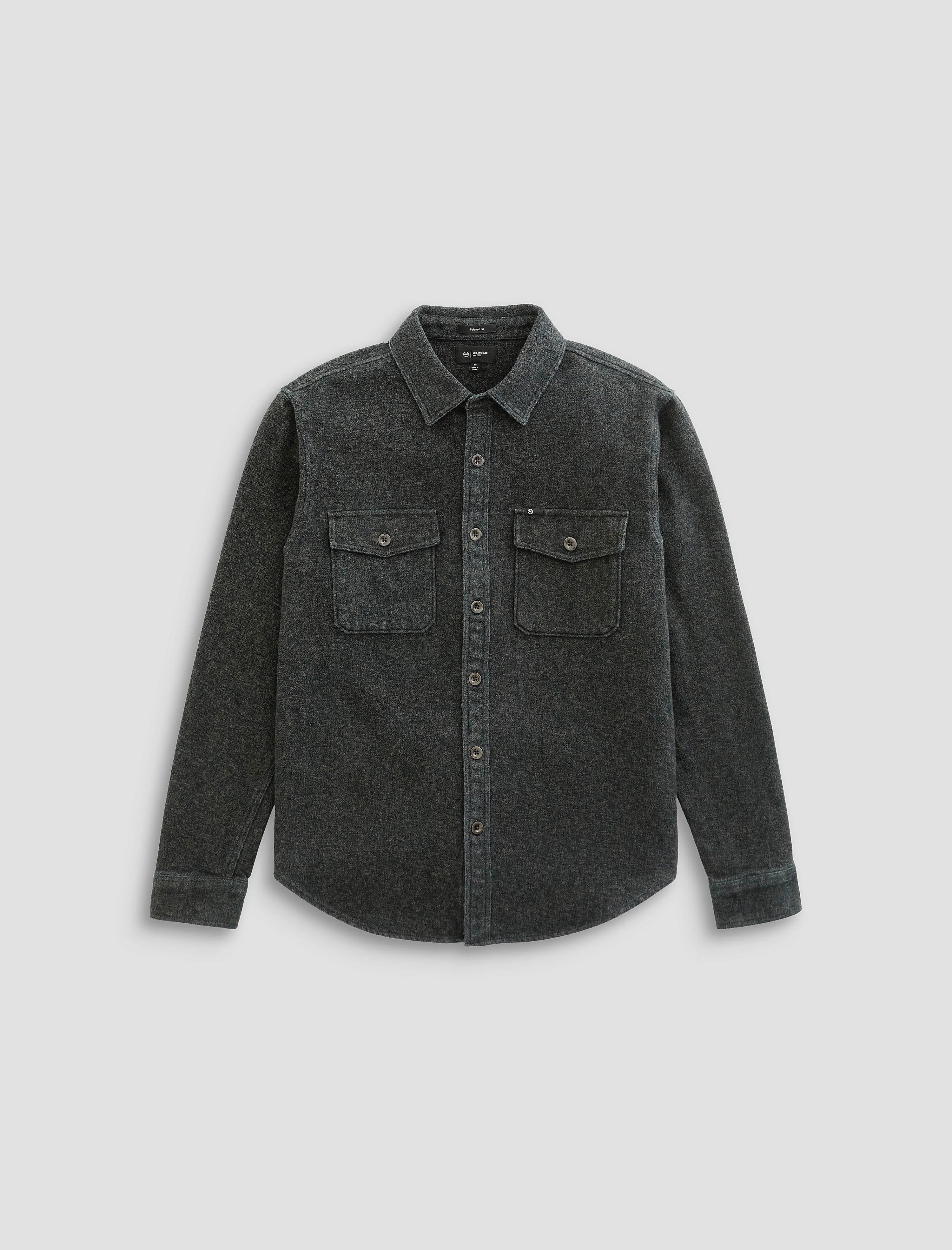 Relaxed Long Sleeve The Wesley Utility Shirt is a relaxed long sleeve. Crafted from Heathered Cotton Tweed for superior comfort and style. Designed with classic flap pocket styling and premium construction for everyday wear. Shown here in heather charcoal. DETAILS & FIT Model is wearing size M. - Body Length: 29 1/2" - Sleeve Length: 25 1/2" - Chest Width: 45 1/2" FABRIC & CARE Heathered Cotton Tweed, 100% Cotton