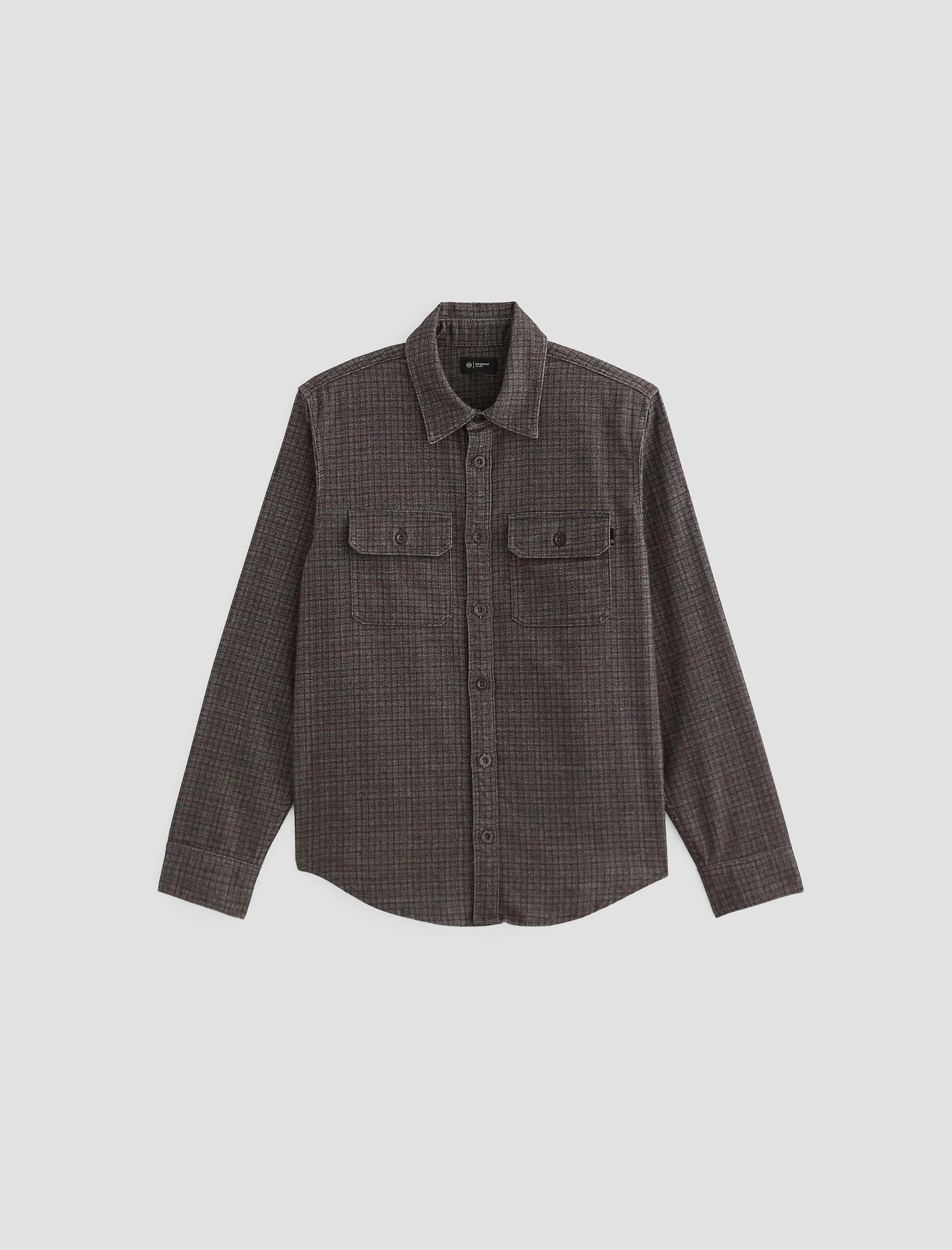 Relaxed Long Sleeve The Wesley Utility Shirt is a relaxed long sleeve style, crafted from Tweedy Houndstooth in a maroon multi. This super soft, brushed stretch cotton blends the look of a tweed plaid print with a woven pattern, offering warmth and comfort with a wool-like feel. Designed with Wash & Wear, it’s easy-care and machine washable—effortless style, no fuss. DETAILS & FIT Model is wearing size M. - Body Length: 29 1/2" - Sleeve Length: 25 1/2" - Chest Width: 45 1/2" FABRIC & CARE Tweedy Houndstooth, 53% Cotton, 29% Polyester, 16% Viscose, 2% Elastane