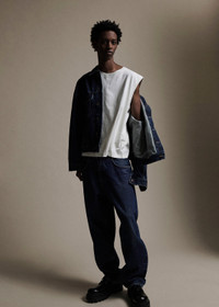 This low slung style features ultra-exaggerated pockets and an easy tapered fit. This fit is true to size. Looks Like: Dark inky indigo Feels Like: Non-stretch regenerative cotton with an easy drape MORE DETAILS Closure: Zipper Fly Rise: 13" Inseam: 32 1/4" Leg Opening: 19" Model is 6'2" and is wearing a Size 32 Fabric: 100% Regenerative Cotton Care Instructions: Machine wash cold inside out with like colors. Do not bleach. Tumble dry low. Made in Turkey with imported materials A662-1206-COLLC