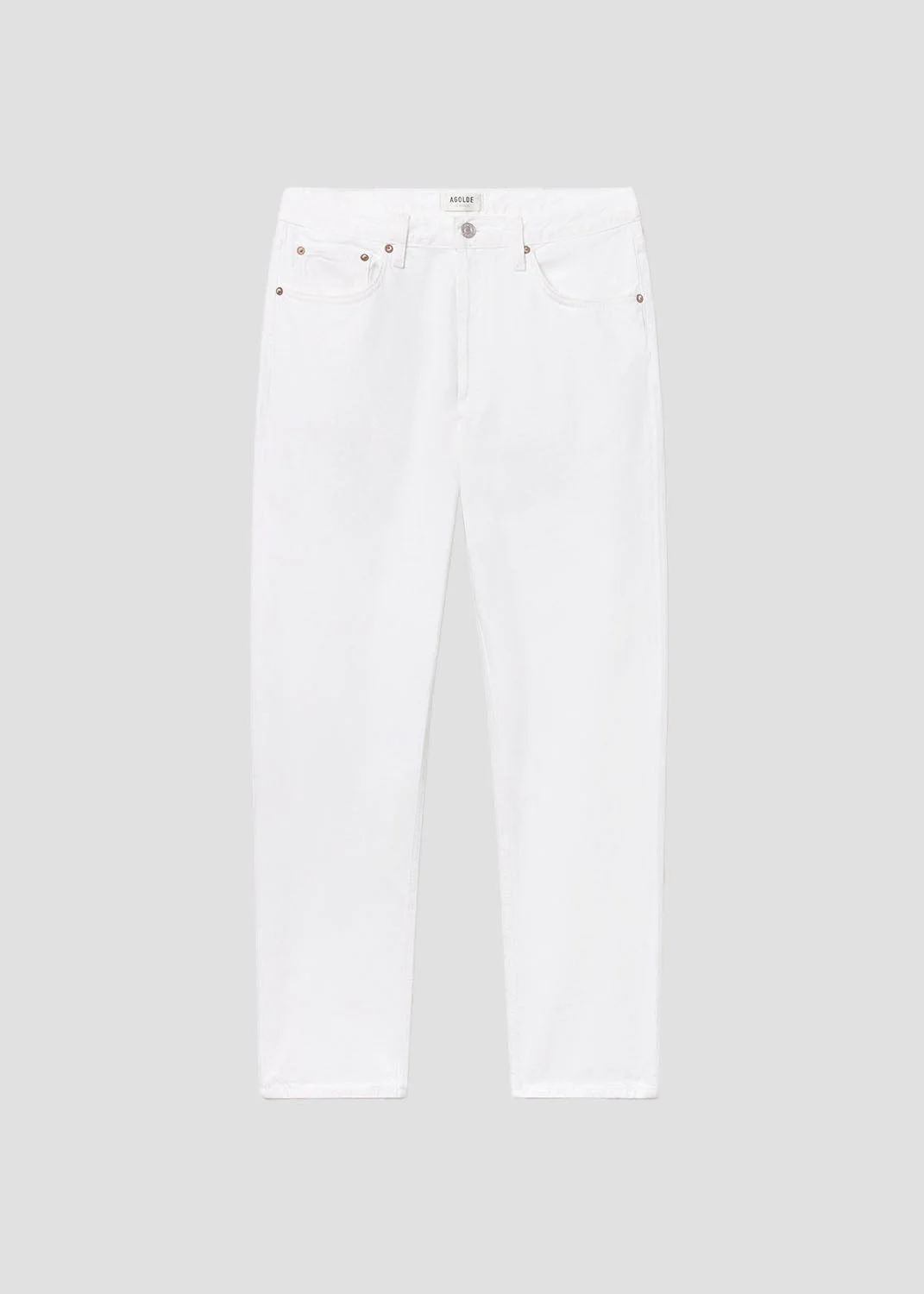 Cue the nostalgia. This 90’s inspired mid-rise is designed to sit relaxed on the waist with an eased up, straight fit through the body. This fit is true to size. Looks Like: Eggshell white Feels Like: Midweight, non-stretch organic cotton MORE DETAILS Closure: Button Fly Rise: 13 1/4" Inseam: 29" Leg Opening: 17 1/2" Model is 6'2" and is wearing a Size 32 Fabric: 100% Organic Cotton Care Instructions: Machine wash cold inside out with like colors. Do not bleach. Tumble dry low. Made in Turkey with imported materials A642-1183-MSHAK