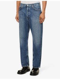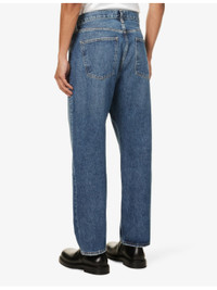 PRODUCT DETAILS - AGOLDE organic-denim jeans - 100% organic cotton - Button and button-fly fastening at front - Relaxed fit, mid-rise, straight leg, belt loops, five pockets, branded hardware, distressed hems, partially lined - Machine wash cold - Size UK 30: rise 12in / 31cm, inside leg 29in / 74cm, leg opening 16in / 41cm - Model is 6ft 2in/1.88m and wears a size UK 30 - Midweight, non-stretch