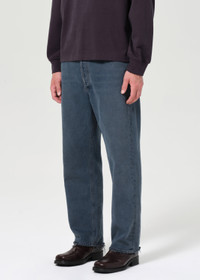 This ‘90s-inspired mid-rise sits easy at the waist with a straight, relaxed fit through the leg. Crafted from 100% Regenerative Cotton, it’s a pared-back essential—understated and consciously made. This fit is true to size. Looks Like: Vintage dark to medium blue denim Feels Like: Rigid, non stretch cotton denim with a soft hand for all day wearability MORE DETAILS Closure: Button Fly Rise: 12 5/8" Inseam: 29" Leg Opening: 17 1/2" Model is 6'2" and is wearing a Size 32 Fabric: 100% Regenerative Cotton Care Instructions: Machine wash cold inside out with like colors. Do not bleach. Tumble dry low. Made in Turkey with imported materials A642C-1141-RSM