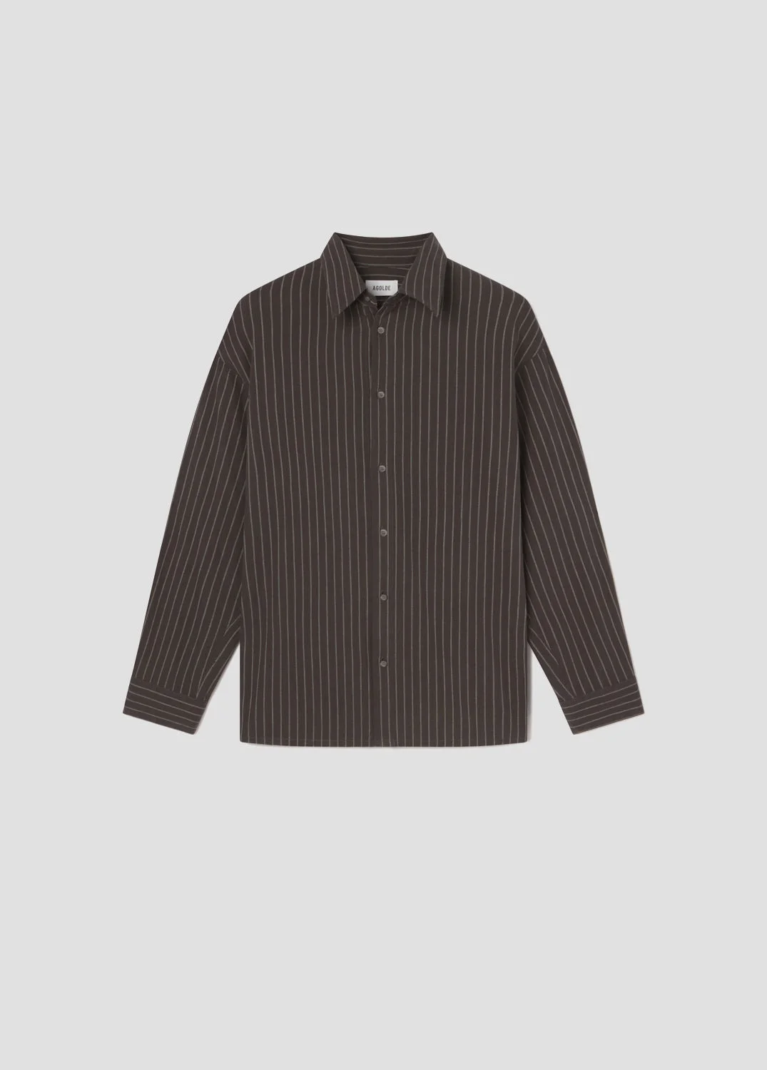 Crafted from Japanese cotton poplin, this casual shirt features a point collar and straight hem. Lightweight and breathable, it offers a relaxed yet refined look. This fit is true to size. Looks Like: Dark grey two toned striped long sleeve button front collared shirt Feels Like: Lightweight cool to the touch woven fabric MORE DETAILS Body Length: 31 1/2" Shoulder to Shoulder: 22 3/4" Sleeve Length: 25" Model is 6'2" and wearing a size Medium Fabric: 90% Cotton, 5% Linen, 5% Ramie Care Instructions: Machine wash cold. Made in Turkey with imported materials A4039-1850-BKTR