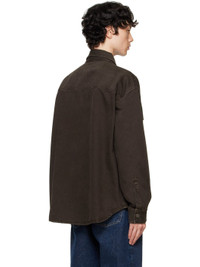 Heavyweight non-stretch regenerative cotton denim shirt. · Spread collar · Press-stud closure · Flap pockets · Shirttail hem · Dropped shoulders · Pleats at single-press-stud barrel cuffs · Logo-engraved antiqued brass-tone hardware Supplier color: Umber