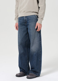 A relaxed silhouette with subtle structure. The Benton features a single front pleat, mid rise, and a wide, easy leg. This fit is true to size. Looks Like: Dark worn in vintage indigo denim Feels Like: Rigid, non stretch cotton denim with a soft hand for all day wearability MORE DETAILS Closure: Zipper Fly Rise: 13 1/2" Inseam: 32 1/4" Leg Opening: 22" Model is 6'2" and is wearing a Size 32 Fabric: 100% Cotton Care Instructions: Machine wash cold inside out with like colors. Do not bleach. Tumble dry low. Made in Turkey with imported materials A687-1821-ACD