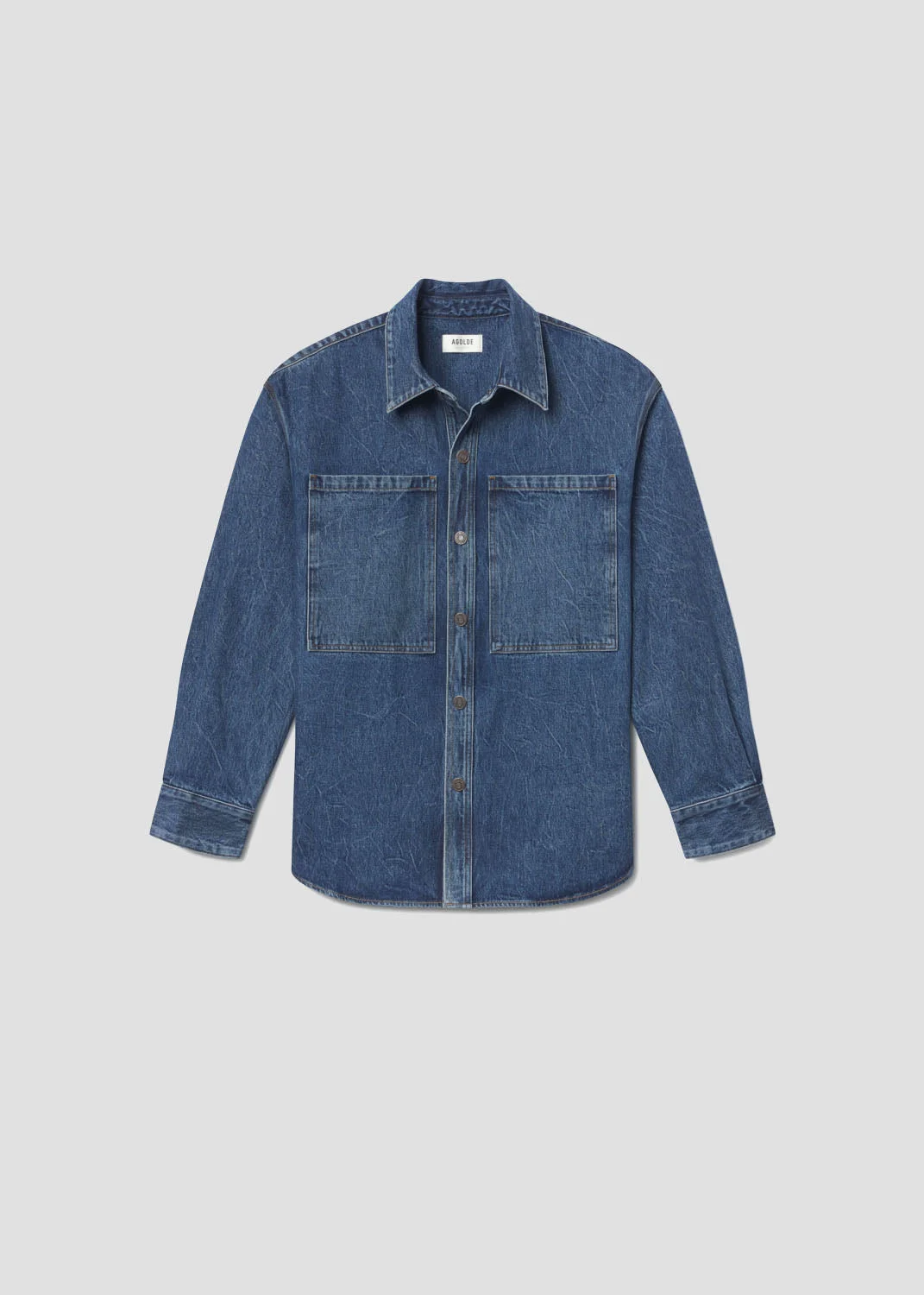 Oversized 90's inspired vintage denim shirt with triple-needle stitching detailing and elongated pockets with a snap front placket. This fit is true to size. Looks Like: Saturated light indigo Feels Like: Zero stretch regenerative cotton MORE DETAILS Body Length: 32" Shoulder to Shoulder: 22 3/4" Sleeve Length: 25 1/4" Model is 6'2" and wearing a size Medium Fabric: 100% Regenerative Cotton Care Instructions: Machine wash cold. Made in USA with imported materials A4031-1206-CRIN