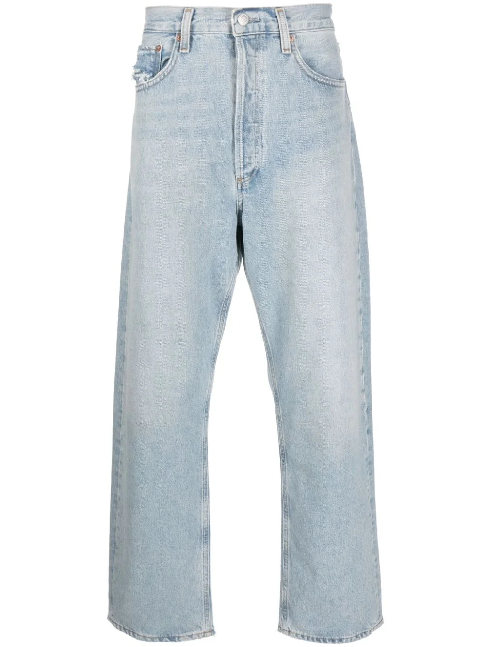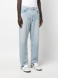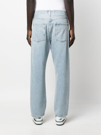 straight-leg mid-rise jeans Highlights - Light blue - Recycled cotton - Washed denim - Distressed finish - Mid-rise - Belt loops - Button fly fastening - Classic five pockets - Straight leg - Straight hem Made in Italy Composition Recycled Cotton 100% SIZE & FIT Model measurements Height 6 ft 2 in(1.87 m) Bust/Chest 36.41 in(92.5 cm) Hips 37 in(94 cm) Waist 29.52 in(75 cm) Measurement FRONT RISE 12.99 in(33 cm) INSIDE LEG 27.99 in(71.1 cm) BACK RISE 15 in(38.1 cm) HIPS 40.98 in(104.1 cm) Hem Width 17.99 in(45.7 cm) WAIST 34.01 in(86.4 cm) FittingInformation Designed with a straight leg, these jeans allow for an unrestricted and comfortable fit over the leg Sturdy and hard-wearing, this denim piece offers no stretch This piece fits true to size – take your usual size Washing instructions Machine Wash
