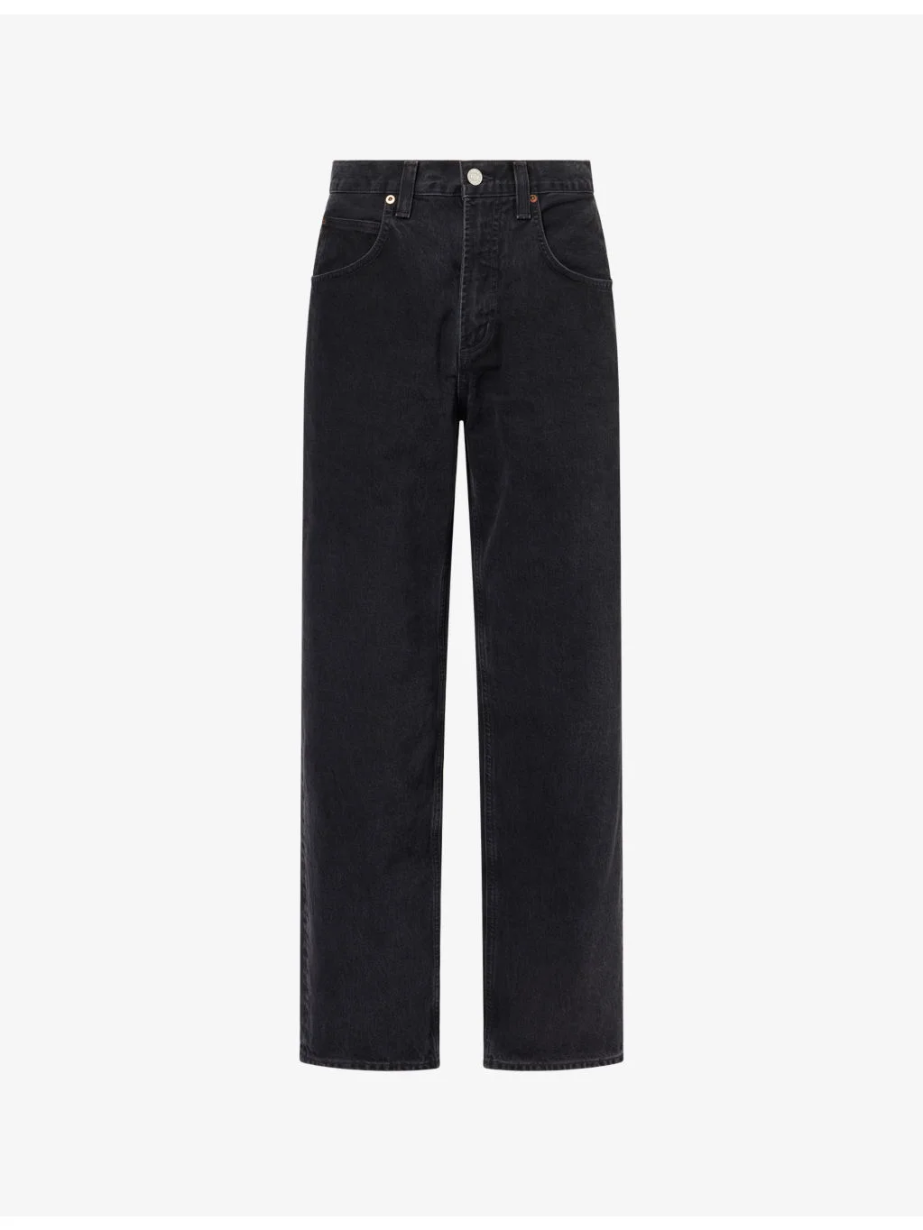 PRODUCT DETAILS - AGOLDE denim jeans - 78% cotton, 22% lyocell - Button and zip-fly fastening - Baggy fit, mid-rise, tapered leg, belt loops, classic five pockets, contrast stitching - Machine wash cold - Size 30: rise 13in / 33cm, inside leg length 33in / 83.82cm, leg opening 18in / 45.7cm - Model is 6ft 2in/1.88m and wears a size UK 30 - Midweight, non-stretch Ref: R04590277