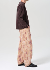 A baggy, mid-rise fit crafted from rigid, heavyweight denim in a medium khaki wash elevated by an overdyed orange tie-dye effect. Made from 100% cotton with an authentic non stretch feel, this pair delivers true structure with a soft hand for all-day wearability. A standout take on a relaxed silhouette—easy, expressive, and effortlessly bold. This fit is true to size. Looks Like: Medium khaki denim with overdyed orange tie dye Feels Like: Rigid, non stretch denim with an authentic feel MORE DETAILS Closure: Zipper Fly Rise: 13" Inseam: 32 1/4" Leg Opening: 19" Model is 6'2" and is wearing a Size 32 Fabric: 100% Cotton Care Instructions: Machine wash cold inside out with like colors. Do not bleach. Tumble dry low. Made in USA with imported materials A662-3053-FLAME