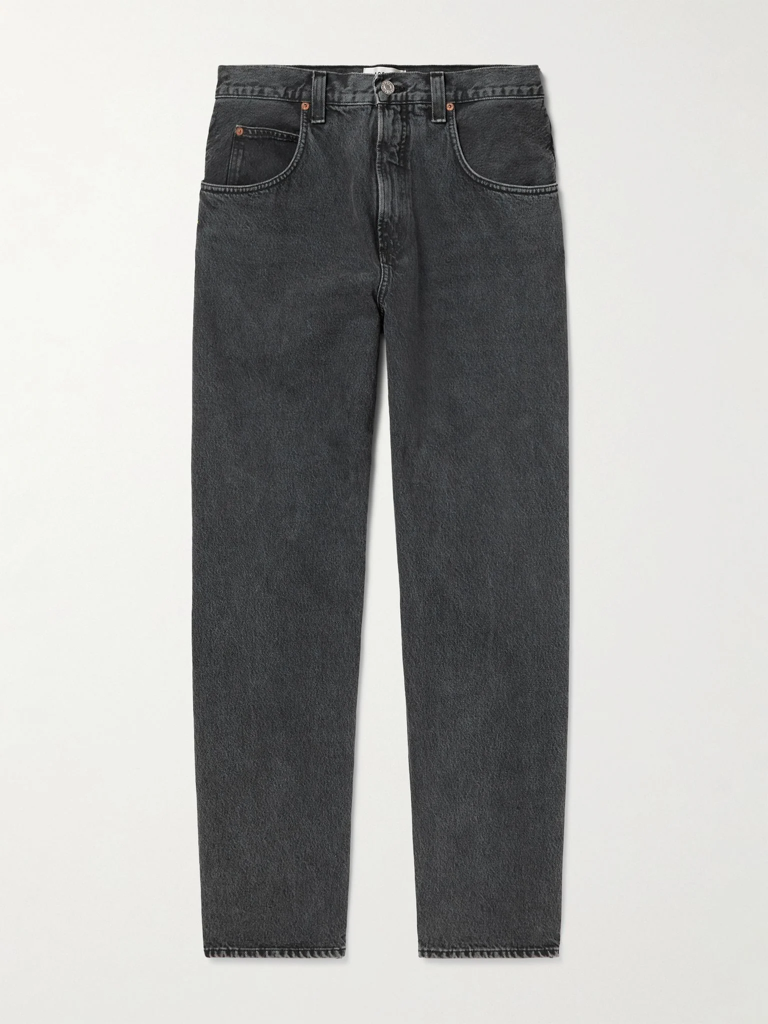 AGOLDE's 'Fusion' jeans feel vintage, but the straight cut is a classic. The denim has a marbled fade. Size & Fit - Fits large to size. Take one size smaller than normal - Relaxed-straight leg, low-crotch style - Mid-weight, non-stretchy fabric - Model is shown wearing a 30 - Model measures: waist size 32, height 6'2"/ 188cm Details & Care - Black denim - Button and zip fastening - 100% cotton - Designer wash: Division