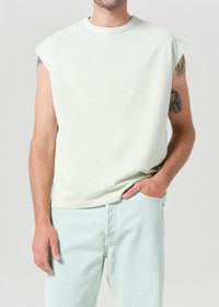 A classic sleeveless tee crafted from lightweight 100% cotton jersey. Soft, breathable, and easy to wear, it’s an essential layer for warm days or relaxed everyday styling. This fit is true to size. Looks Like: Light seafoam green sleeveless tank Feels Like: Lightweight jersey cotton MORE DETAILS Body Length: 27 1/2" Shoulder to Shoulder: 22 1/4" Model is 5'10" and wearing a size Small Fabric: 100% Cotton Care Instructions: Machine wash cold. Made in USA with imported materials A1025-1521-MNCRM