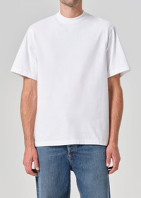 An essential perfected. Standard slim fit tee crafted in a breathable jersey cotton. This fit is true to size. Looks Like: Crisp cloud white Feels Like: Midweight and breathable jersey cotton MORE DETAILS Body Length: 29" Shoulder to Shoulder: 20" Sleeve Length: 10" Model is 5'10" and wearing a size Small Fabric: 100% Cotton 1% Care Instructions: Machine wash cold. Made in USA with imported materials A1009B-1521-WHT