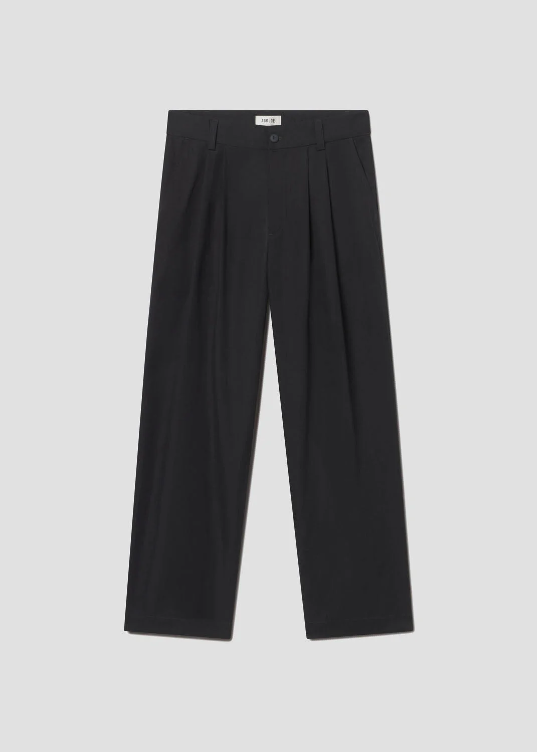Relaxed straight leg with easy, pleated detailing and a subtle taper. This fit is true to size. Looks Like: Clean black Feels Like: Midweight poplin MORE DETAILS Closure: Zipper Fly Rise: 14 1/2" Inseam: 30 1/2" Leg Opening: 19 1/2" Model is 6'2" and is wearing a Size 32 Fabric: 100% Cotton Care Instructions: Machine wash cold inside out with like colors. Do not bleach. Tumble dry low. Made in USA with imported materials A684-1768-RSV