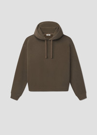 Classic hoodie silhouette crafted from an overdyed, textural heather. This fit is true to size. Looks Like: Clean, dark brown Feels Like: Heavyweight brushed fleece with a warm, plush hand MORE DETAILS Body Length: 27 5/8" Shoulder to Shoulder: 25" Sleeve Length: 23" Model is 6'2" and wearing a size Medium Fabric: 97% Cotton 3% Polyester Care Instructions: Machine wash cold. Made in USA with imported materials A1015-1294-SHAE