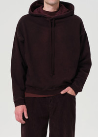 An overdyed burgundy hooded sweatshirt crafted from heavyweight brushed fleece. This fit is true to size. Looks Like: Deep dark overdyed burgundy hooded sweatshirt Feels Like: Heavyweight brushed fleece with a warm, plush hand MORE DETAILS Body Length: 27 5/8" Shoulder to Shoulder: 25" Sleeve Length: 23" Model is 6'2" and wearing a size Medium Fabric: 100% Cotton Care Instructions: Machine wash cold. Made in USA with imported materials A1015B-1294-PHER