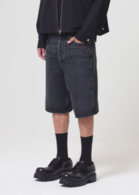 Skate short with an over the knee inseam giving a relaxed silhouette. Looks Like: Washed black Feels Like: Non-stretch cotton MORE DETAILS Machine wash cold inside out with like colors. Do not bleach. Tumble dry low. Fabric Content: 100% Regenerative Cotton Made in USA with imported materials. A658-1346-PARADOX