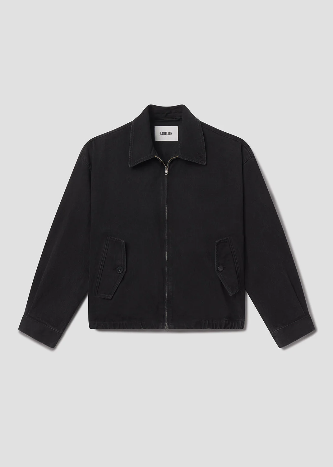 Traditional Harrington jacket. Featuring a two-way zipper, elastic hem, and button cuffs for a classic touch. Fully lined. This fit is true to size. Looks Like: Dark saturated black jacket with zip front closure and pockets Feels Like: Rigid, non stretch cotton denim with a soft hand for all day wearability MORE DETAILS Body Length: 27" Shoulder to Shoulder: 22 1/2" Sleeve Length: 24 1/4" Model is 6'2" and wearing a size Medium Fabric: 67% Organic Cotton, 22% Lyocell, 11% Post Consumer Recycled Cotton Care Instructions: Machine wash cold. Made in USA with imported materials A4043-1683-KBR