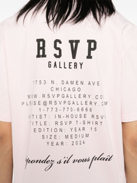x RSVP Gallery cotton T-shirt Highlights - Powder pink - Crew neck - Short sleeves - Logo print at the chest Made in United States Composition Cotton 100% SIZE & FIT Model measurements Height 6 ft 2 in(1.88 m) Bust/Chest 34.25 in(87 cm) Hips 34.64 in(88 cm) Waist 26.77 in(68 cm) FittingInformation Designed for a relaxed fit, this piece allows for comfort and movement when worn Made from a midweight non-stretch fabric, this piece offers minimal elasticity when worn