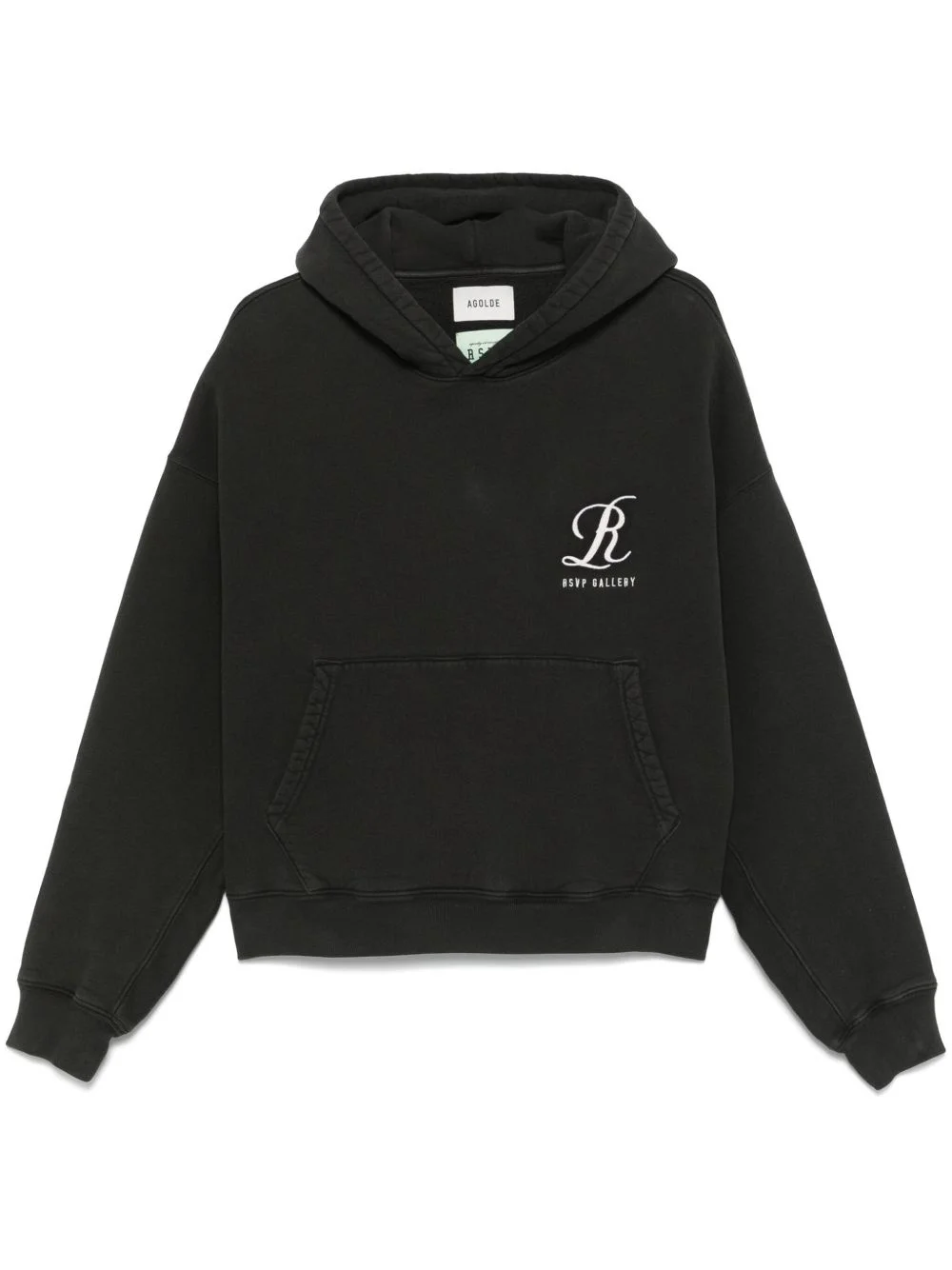 x RSVP Gallery logo-embroidered hoodie Highlights - Black - Front pouch pocket - Drop shoulder - Long sleeves Made In United States Composition Cotton 97%, Polyester 3% SIZE & FIT Model measurements Height 6 ft 2 in(1.89 m) Bust/Chest 35.03 in(89 cm) Hips 38.18 in(97 cm) Waist 29.92 in(76 cm) FittingInformation Designed to be unstructured, offering a loose fit throughout The ribbed hem offers a close, comfortable fit Made from a midweight non-stretch fabric, this piece offers minimal elasticity when worn