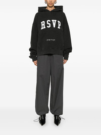 x RSVP logo-print hoodie Highlights - Anthracite grey - Classic hood - Front pouch pocket - Ribbed cuffs and hem - When buying this unisex item, keep in mind that it is graded in standard men's sizing. Made in United States Composition Cotton 97%, Polyester 3% SIZE & FIT Model measurements Height 5 ft 10 in(1.77 m) Bust/Chest 31.88 in(81 cm) Hips 36.22 in(92 cm) Waist 24.01 in(61 cm) FittingInformation This piece is unisex – if you usually select men's sizing expect a loose fit throughout; if you usually select women's sizes, expect an oversized fit The ribbed hem offers a close, comfortable fit Made from a midweight non-stretch fabric, this piece offers minimal elasticity when worn