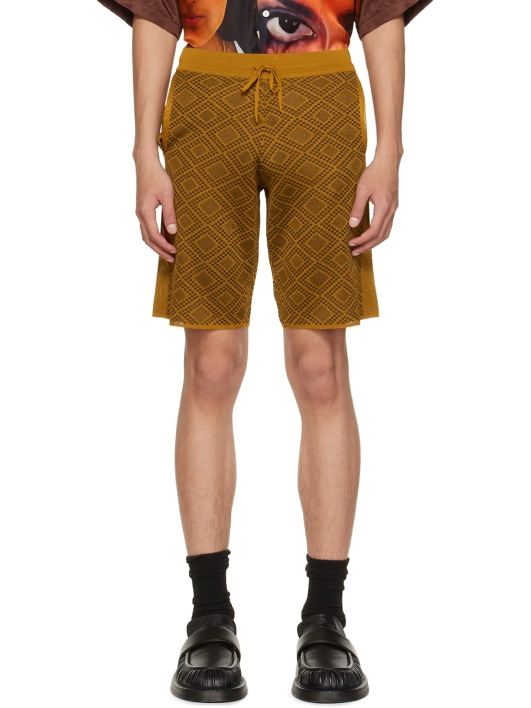 Knit viscose shorts. Jacquard graphic pattern throughout. · Drawstring at elasticzed wasitband · Two-pocket styling · Rib knit cuffs Supplier color: Multicolor brown 100% viscose. Made in Turkey 222291M193008