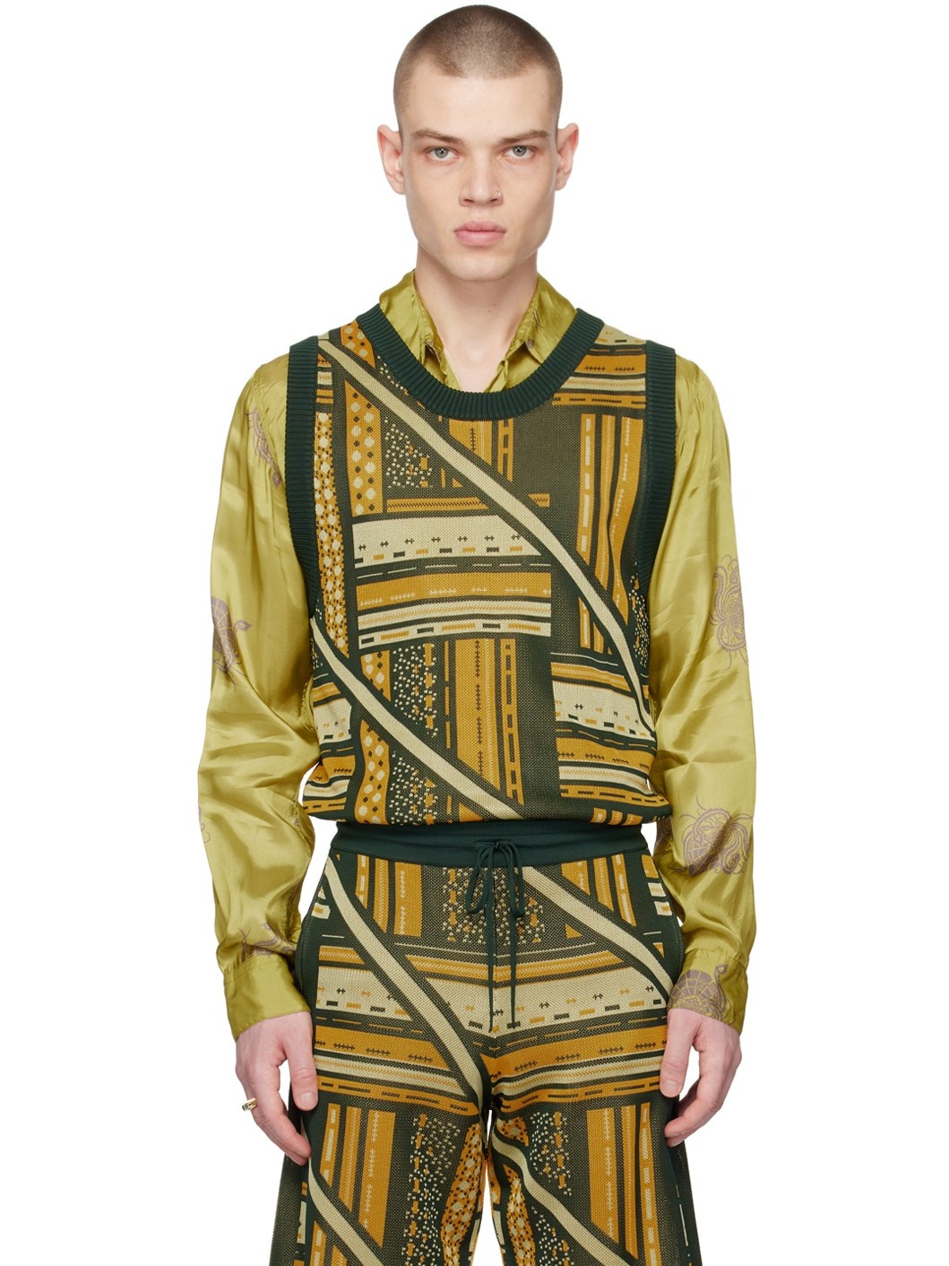 Viscose mesh vest. · Jacquard pattern throughout · Rib knit crewneck and armscyes Supplier color: Green/Yellow