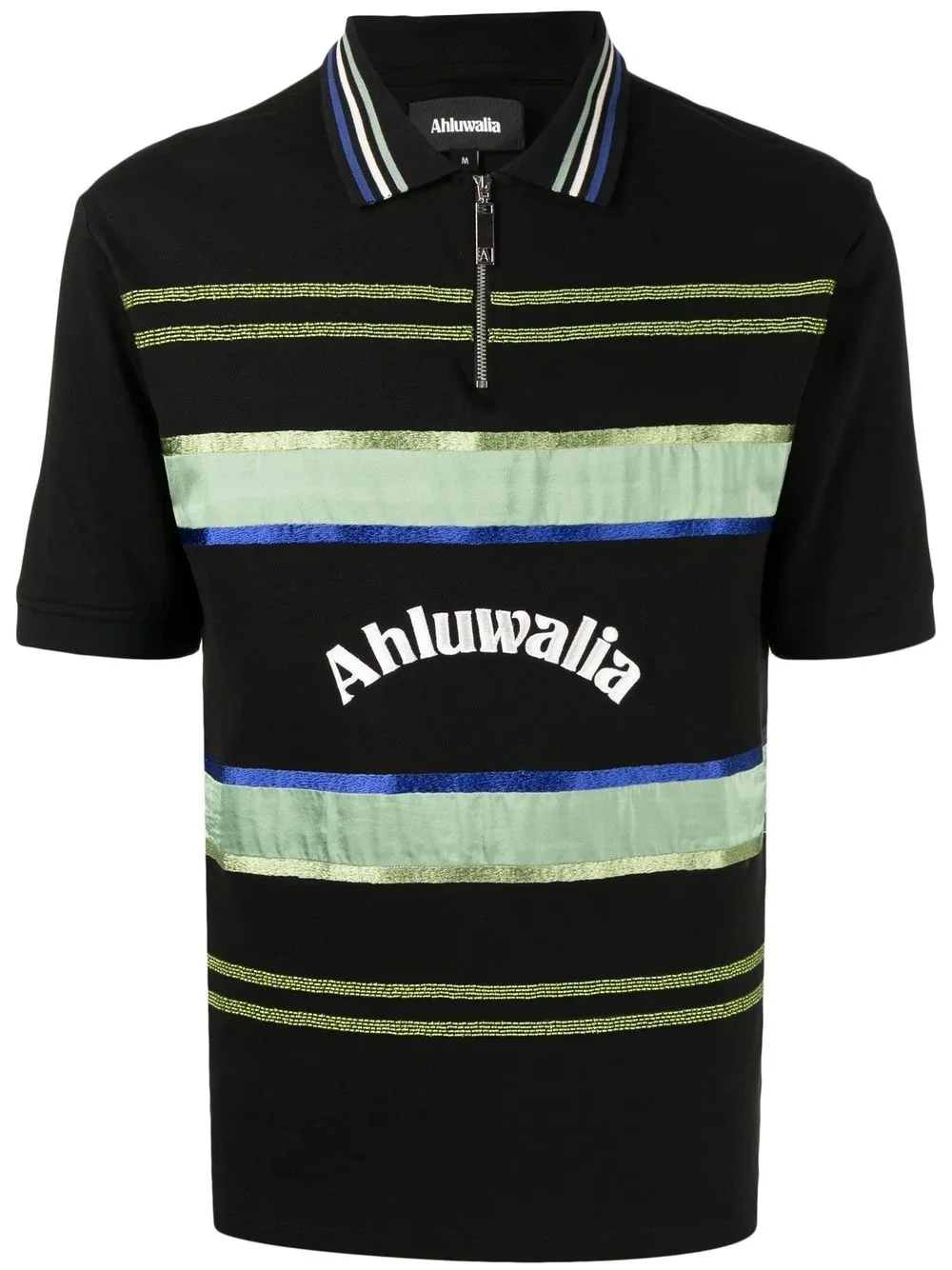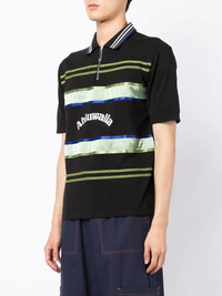 logo-print zip-up polo shirt Highlights - Black/multicolour - Organic cotton - Pique weave - Patterned jacquard - Horizontal stripe pattern - Bead embellishment - Logo print to the front - Spread collar - Short front zip fastening - Short sleeves - Straight hem Imported Composition Organic Cotton 100% SIZE & FIT Model measurements Height 6 ft 2 in(1.87 m) Bust/Chest 34.25 in(87 cm) Hips 36.22 in(92 cm) Waist 29.52 in(75 cm) Measurement CHEST 40.15 in(102 cm) SLEEVE LENGTH 10.23 in(26 cm) Shoulder Width 18.5 in(47 cm) LENGTH 25.19 in(64 cm) FittingInformation This piece fits true to size. We recommend you get your regular size Cut for a loose fit Made with a mid-weight fabric Washing instructions Dry Clean Only