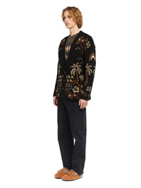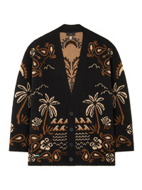 This Fall / Winter 2025, Alanui celebrates the splendor of the natural world. Palms, ocean waves, and hibiscus flowers form a textured foulard motif to remind us that paradise is all around us. The Glimpse of Eden Cardigan is lovingly crafted from a cashmere, wool, and cotton blend using intricate double jacquard knit on a classic cardigan fit. Finished with real horn buttons. DETAILS - Product Code LMHB027E25KNI0031064 - Crafted from 79% Wool 12% Cashmere 8% Cotton 1% Polyammide. - The model is 189 CM and wears a size M. - This item fits true to size.