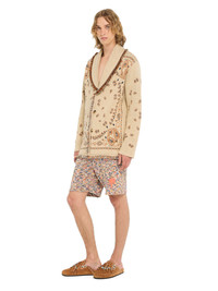 A bold fusion of two signature Alanui styles, the Bandana Jacquard Cardigan is a standout piece within any wardrobe. Crafted from cashmere using double jacquard knit, each cardigan pairs the original Icon fit with the iconic Bandana Pattern to create a true statement look. Finished with real horn buttons and multicolored fringed edges. DETAILS - Product Code LMHB039R26KNI0011784 - Crafted from 66% Cashmere 34% Linen Product weight: 1360 grTaking four hours to be knitted and another six to be assembled. - The model is 189 cm and wears a size M. - The item fits true to size.