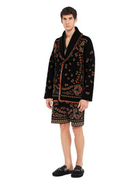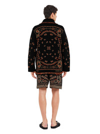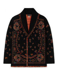 Another signature Alanui style, the Bandana Jacquard Cardigan is lovingly crafted from 100% cashmere using double jacquard knit. Each cardigan pairs the original Icon fit with the iconic Bandana Pattern to create a true statement look. Featuring real horn buttons and multicolored fringed edges. DETAILS - Product Code LMHB039R25KNI0011023 - Made In Italy - Crafted from 100% Cashmere. - This item weighs 1140 gr and takes four hours to be knitted and another six to be assembled. - The model is 187 cm and wears a size M. - This item fits true to size.
