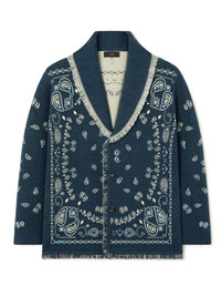 A bold fusion of two signature Alanui styles, the Bandana Jacquard Cardigan is a standout piece within any wardrobe. Crafted from cashmere using double jacquard knit, each cardigan pairs the original Icon fit with the iconic Bandana Pattern to create a true statement look. Finished with real horn buttons and multicolored fringed edges. DETAILS - Product Code LMHB039R26KNI0084684 - Crafted from 67% Cashmere 33% Linen Product weight: 1360 grTaking four hours to be knitted and another six to be assembled. - The model is 188 cm and wears a size M. - The item fits true to size.