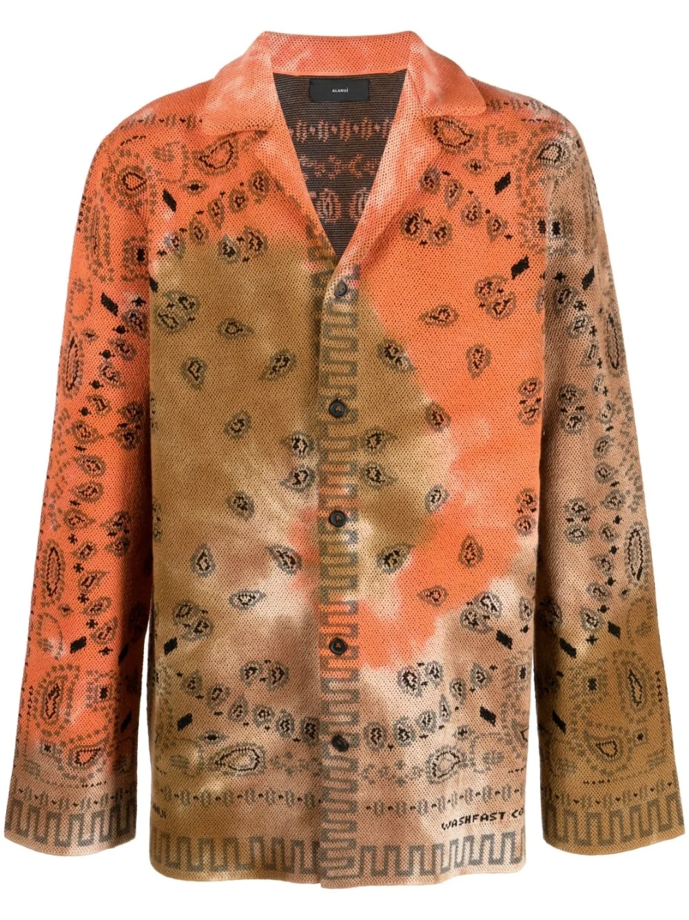 bandana-print cotton shirt Highlights - Beige - Orange - Cotton - Knitted construction - Bandana print - Notched collar - Front button fastening - Long sleeves - Straight hem Made in Italy Composition Cotton 100% SIZE & FIT Model measurements Height 6 ft 0 in(1.84 m) Bust/Chest 35.82 in(91 cm) Hips 37 in(94 cm) Waist 28.34 in(72 cm) FittingInformation Designed to be unstructured, offering a loose fit throughout Made with a midweight knit, this piece offers some stretch This piece fits true to size – take your usual size Measurement CHEST 48.03 in(122 cm) SLEEVE LENGTH 27.16 in(69 cm) HIPS 48.81 in(124 cm) LENGTH 31.49 in(80 cm) WAIST 47.24 in(120 cm) Washing instructions Dry Clean Only