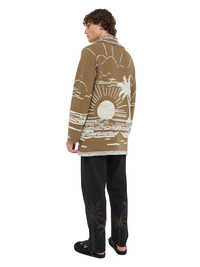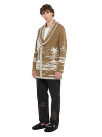 This Spring/Summer 2025, the signature Alanui cardigan transports you to the sun-soaked shores of Africa. Pairing the original Icon fit with a recycled cashmere and silk blend in double jacquard knit, the Beyond the Horizons Cardigan captures the sun setting over a windswept, shell-strewn shoreline. Finished with real horn buttons and fringed edges. DETAILS - Product Code LMHB039R25KNI0036303 - Made In Italy - Crafted from 48% Silk, 47% Cashmere, 5% Wool. - This item weighs 1131 gr and takes four hours and an half to be knitted and another six to be assembled. - The model is 189 cm and wears a size M. - This item fits true to size.