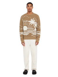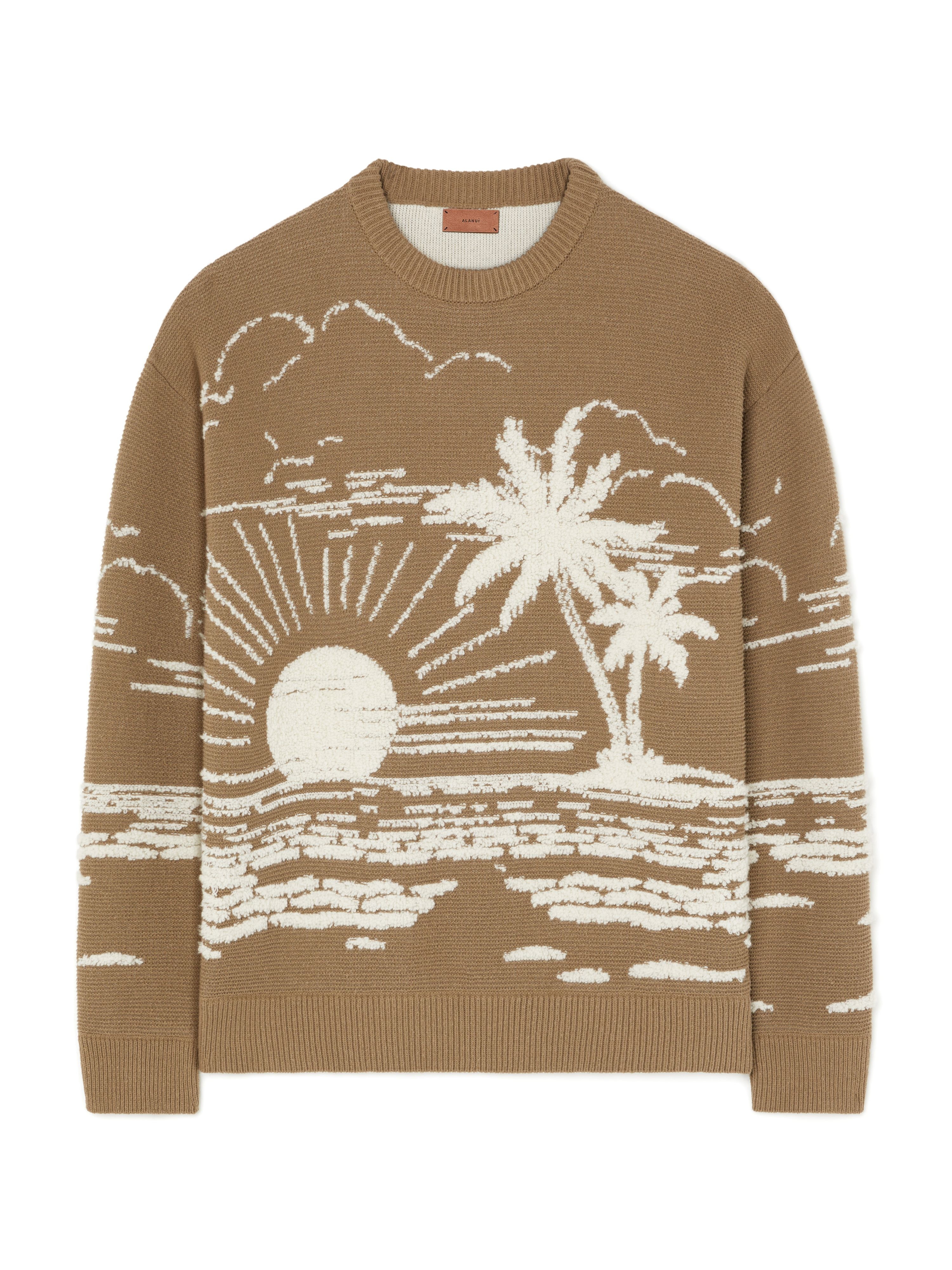 Alanui takes you to the sun-soaked shores of Africa this season. Crafted from a recycled cashmere and silk blend in double jacquard knit, the Beyond the Horizons Sweater captures the sun setting over a windswept, shell-strewn shoreline. Complete with ribbed finishes. DETAILS - Product Code LMHE033R25KNI0036303 - Made In Italy - Crafted from 48% Silk, 47% Cashmere, 5% Wool. - This item weighs 910 gr and takes three hours to be knitted and another three to be assembled. - The model is 189 cm and wears a size M. - This item fits true to size.
