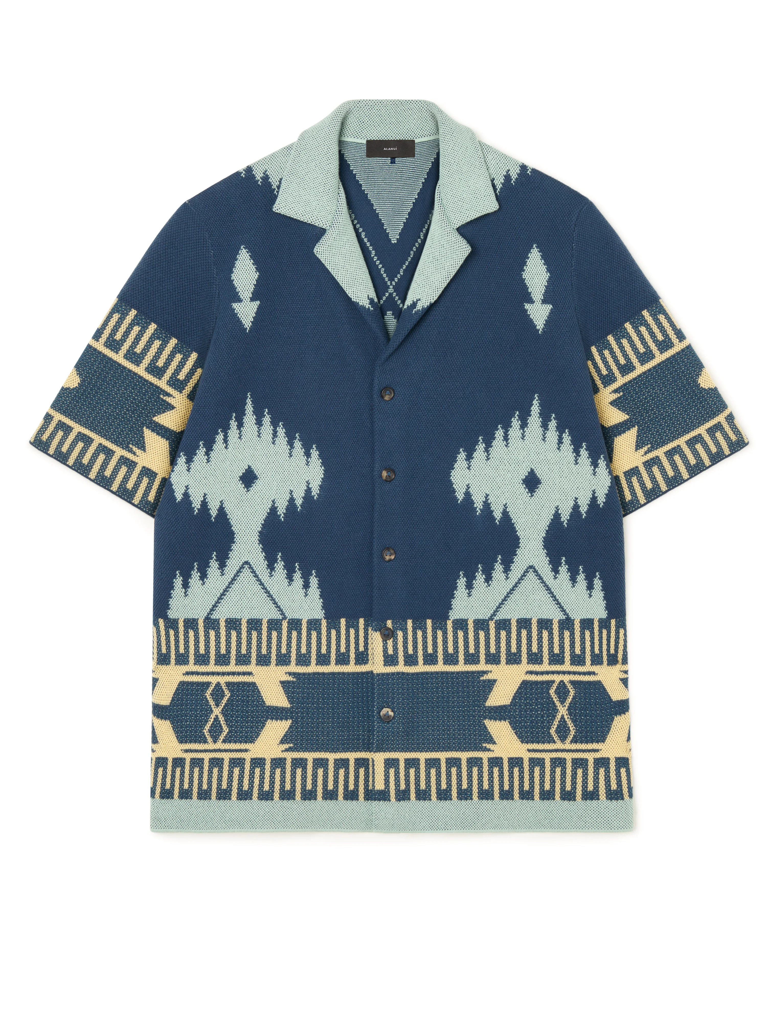 Crafted from cotton piquet using double jacquard knit, the Icon Shirt features the Iconic Alanui Pattern in a summery interpretation of the signature cardigan style. Wear with matching Bermuda shorts for an effortless total look. DETAILS - Product Code LMHY001R26KNI001464F - Crafted from 100% Cotton - Product weight: 580 gr - Taking four hours to be knitted and another three to be assembled. - The model is 189 cm and wears a size M. - The item fits true to size.