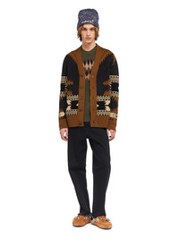 This Fall / Winter 2025, Alanui sets off on a trip around the world, traveling eastbound to the wilds of California. Crafted from a wool and linen blend using intricate jacquard knit, the Dreamscape Icon Cardigan features the iconic Alanui pattern in a Western-inspired color palette for a premium take on Americana style. Finished with bone fish-eye buttons and ribbed trims. DETAILS - Product Code LMHB035E25KNI0011060 - Crafted from 87% Virgin Wool 11% Polyammide 25% LI. - The model is 189 CM and wears a size M. - This item fits true to size.